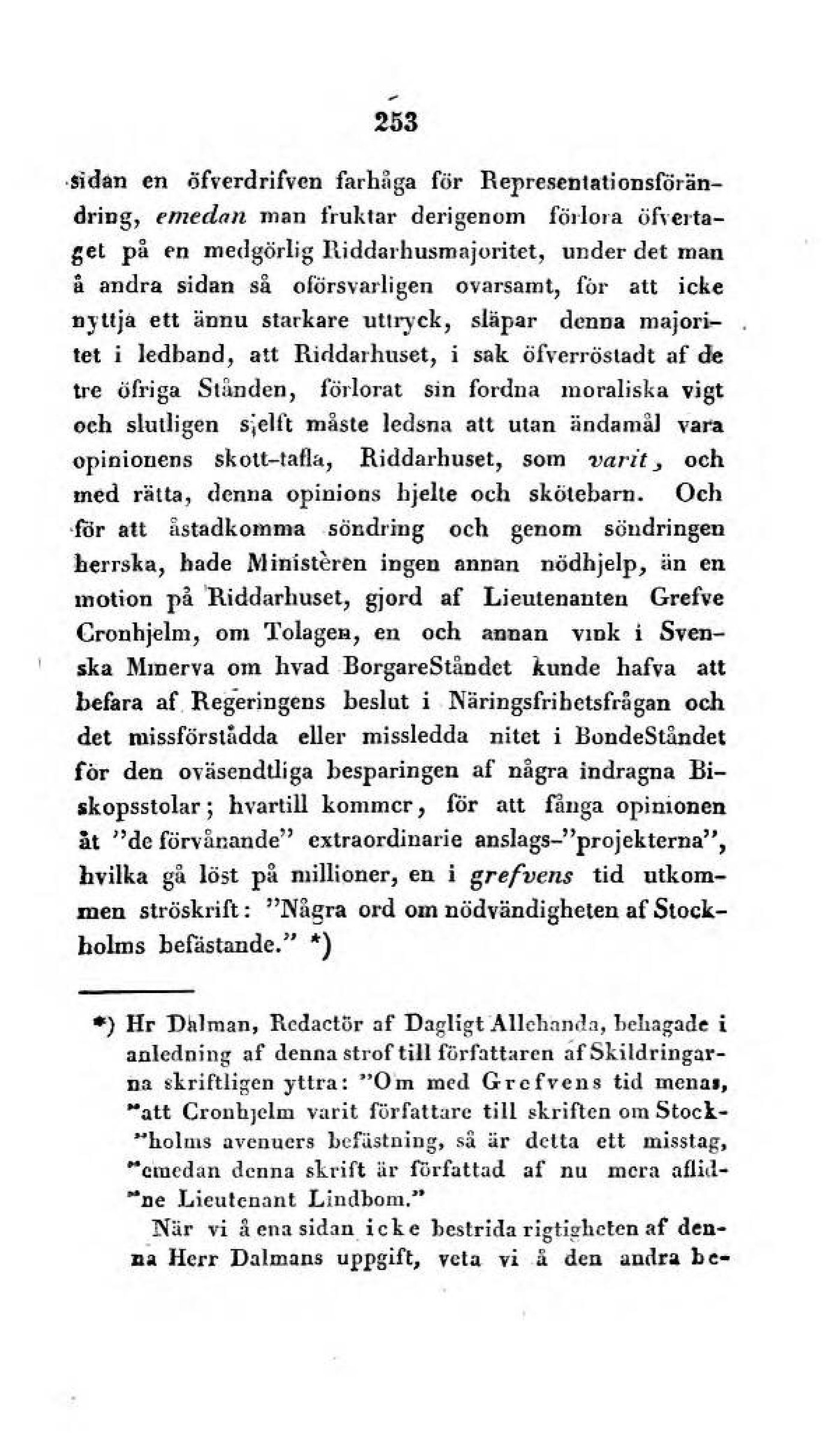 •) Hr Dalman, Rcdactör af Dagligt Allehanda, behagade i