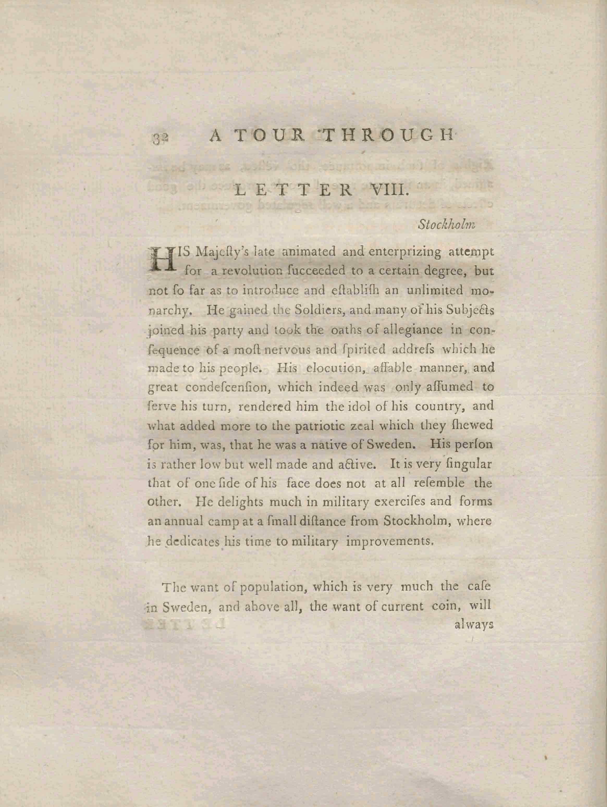 Full resolution (JPEG) - On this page / på denna sida - VIII. King of Sweden. Last revolution. His manner, behaviour and person. Erects distilleries. Failure of his Scheme
