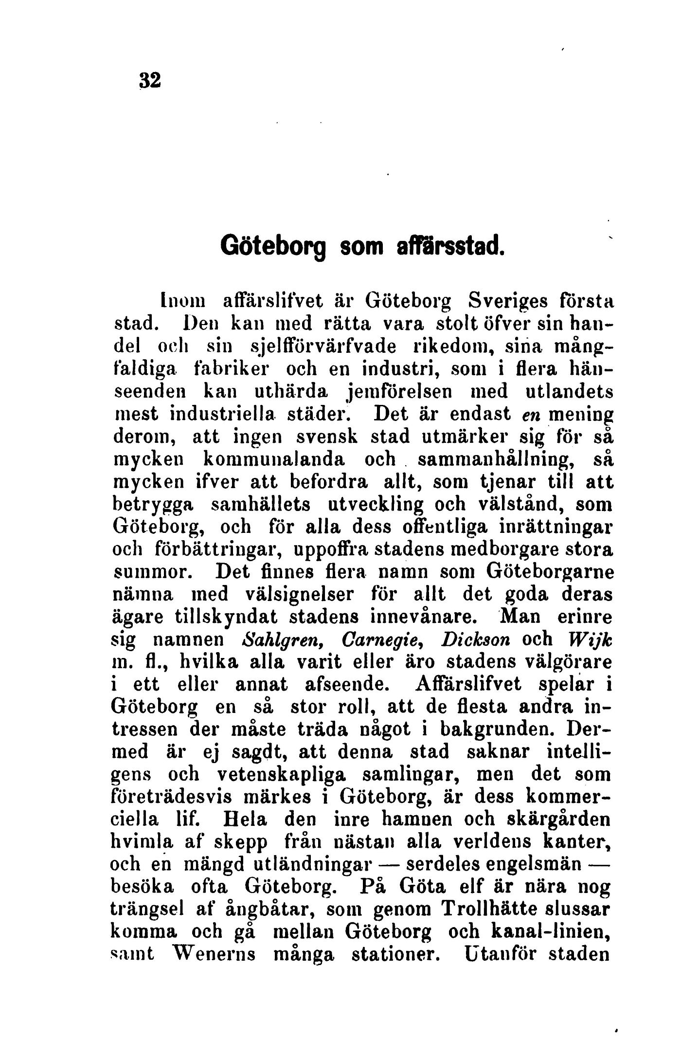 Inom affärslifvet är Göteborg Sveriges första
