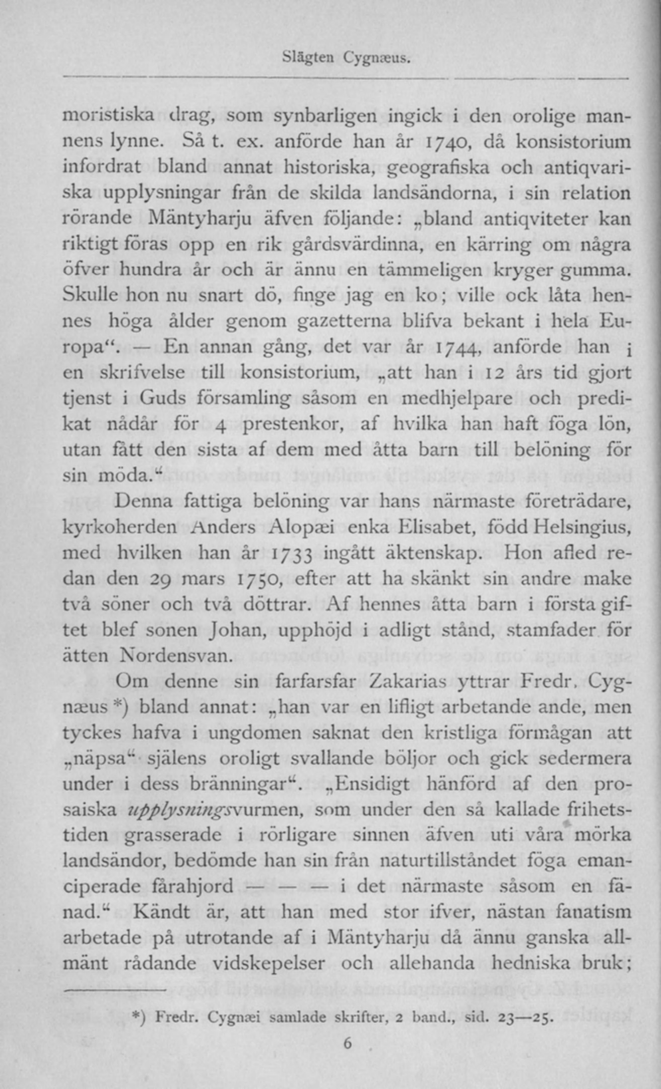Cygnaeus *) bland annat: „han var en lifiigt arbetande ande, men