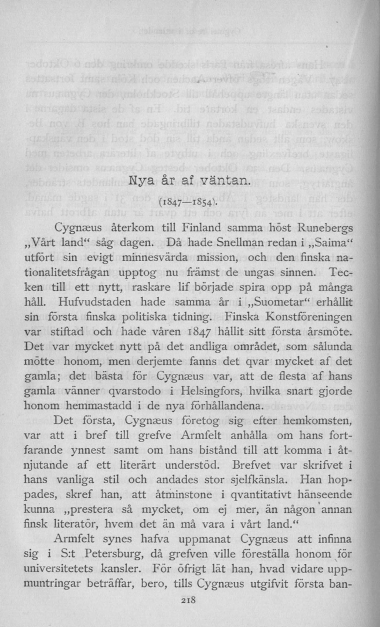 uppmuntringar beträffar, bero, tills Cygnaeus utgifvit första ban-