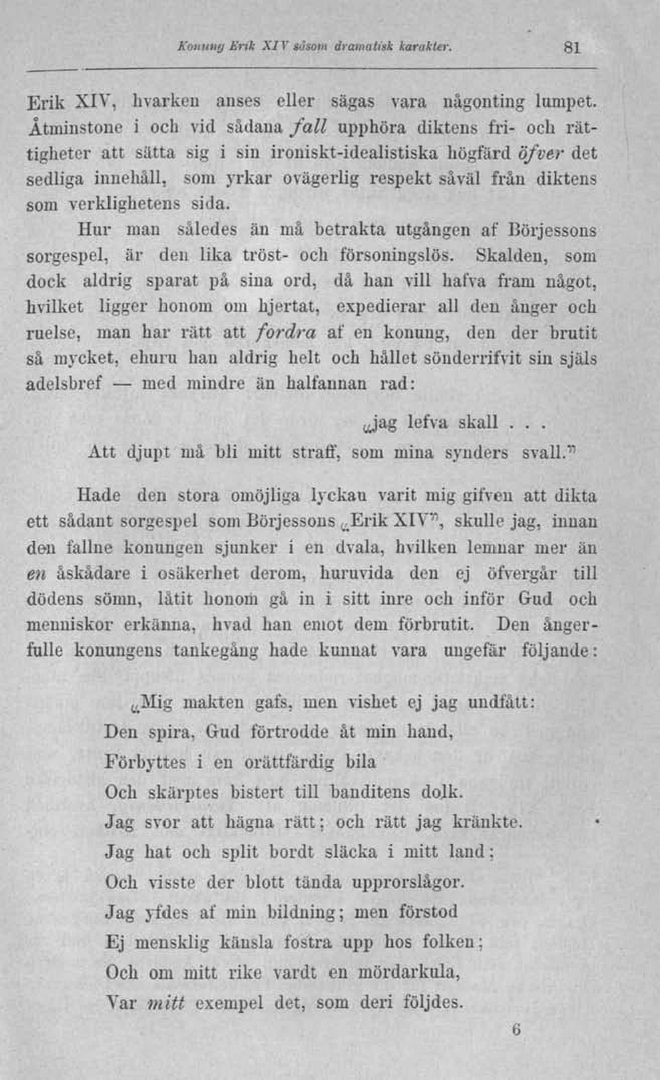ett sådant sorgespel som Börjessons ,__Erik XIV", skulle jag, inuan