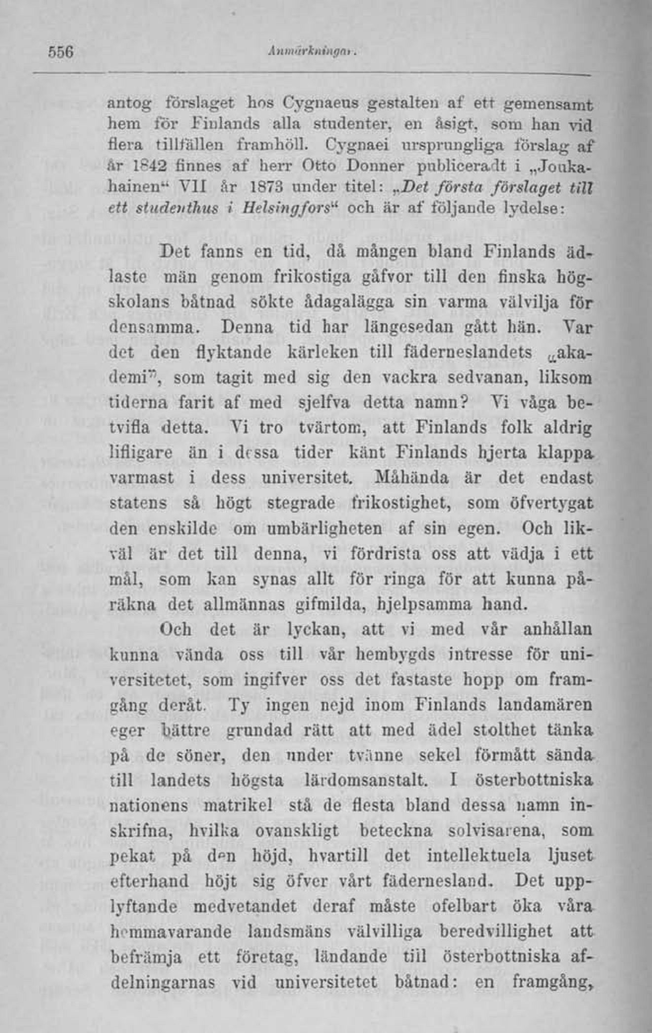 ett studenthus i Helsingfors“ och är af följande lydelse: