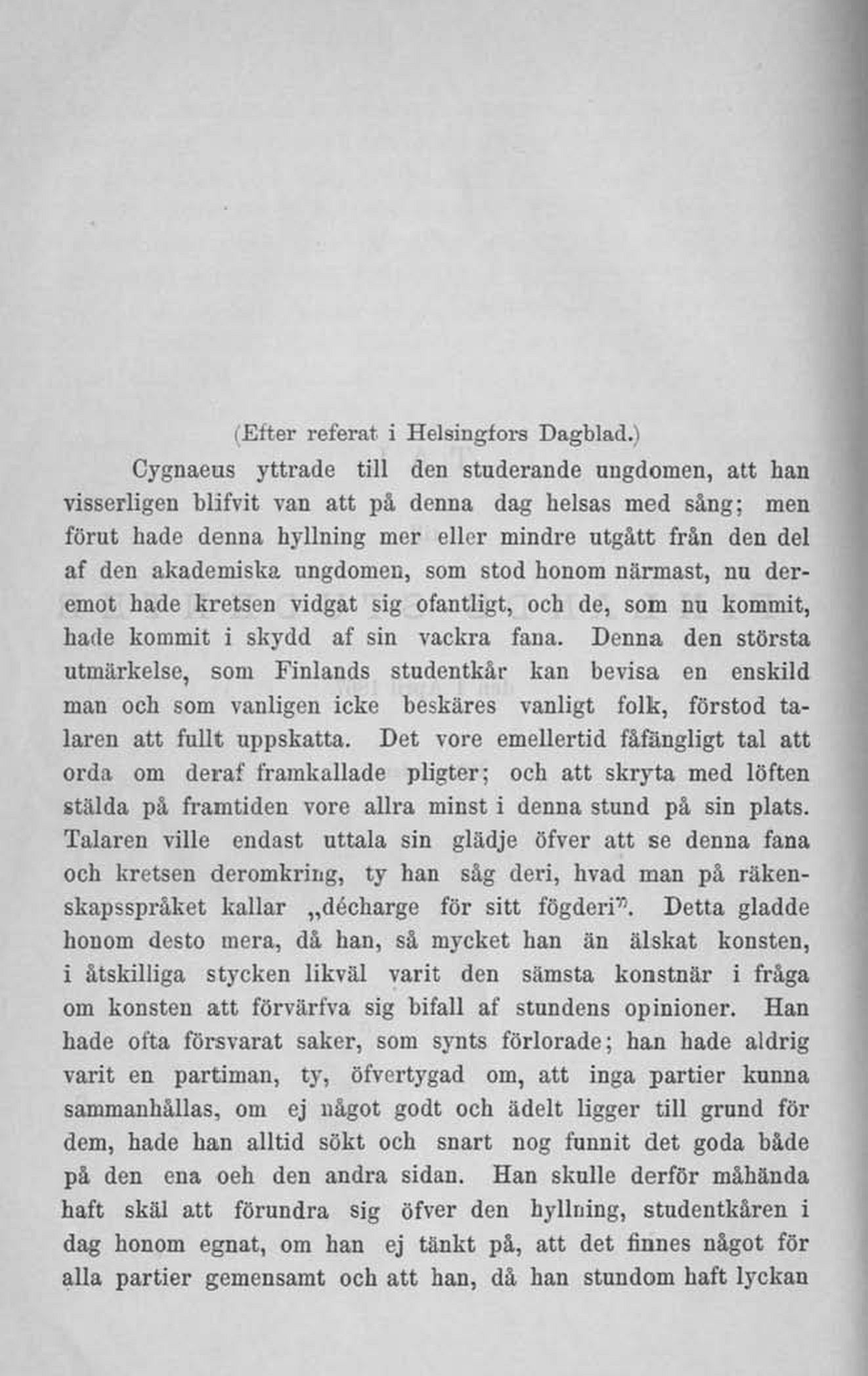 Cygnaeus yttrade till den studerande uugdomen, att lian