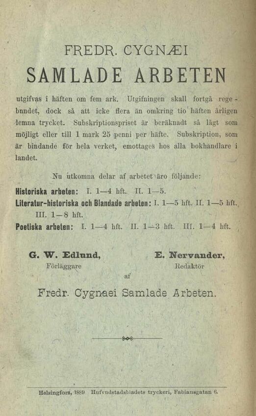 Fredr. Cygnaei Samlade Arbeten.