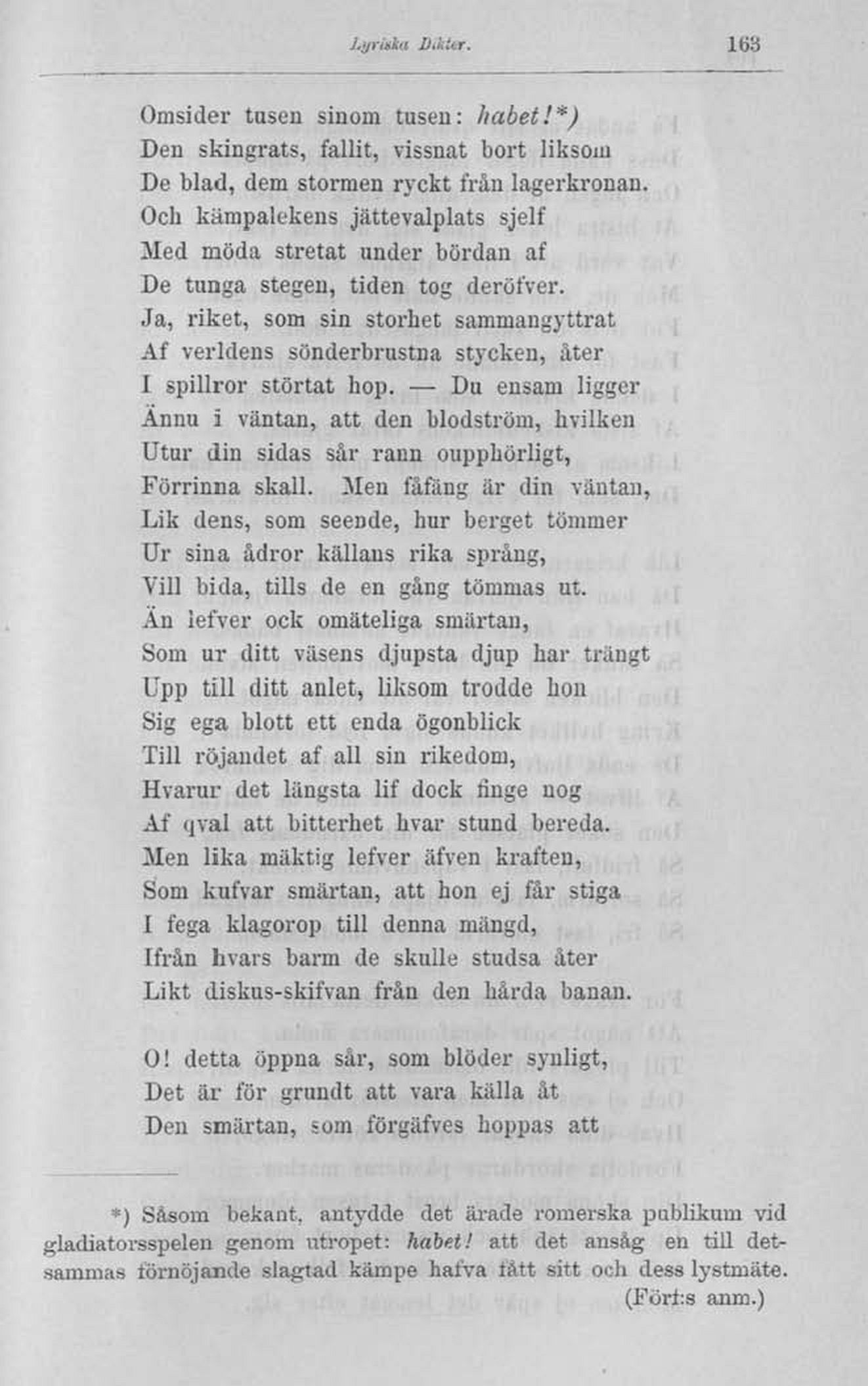 *) Såsom bekant, antydde det ärade romerska publikum vid