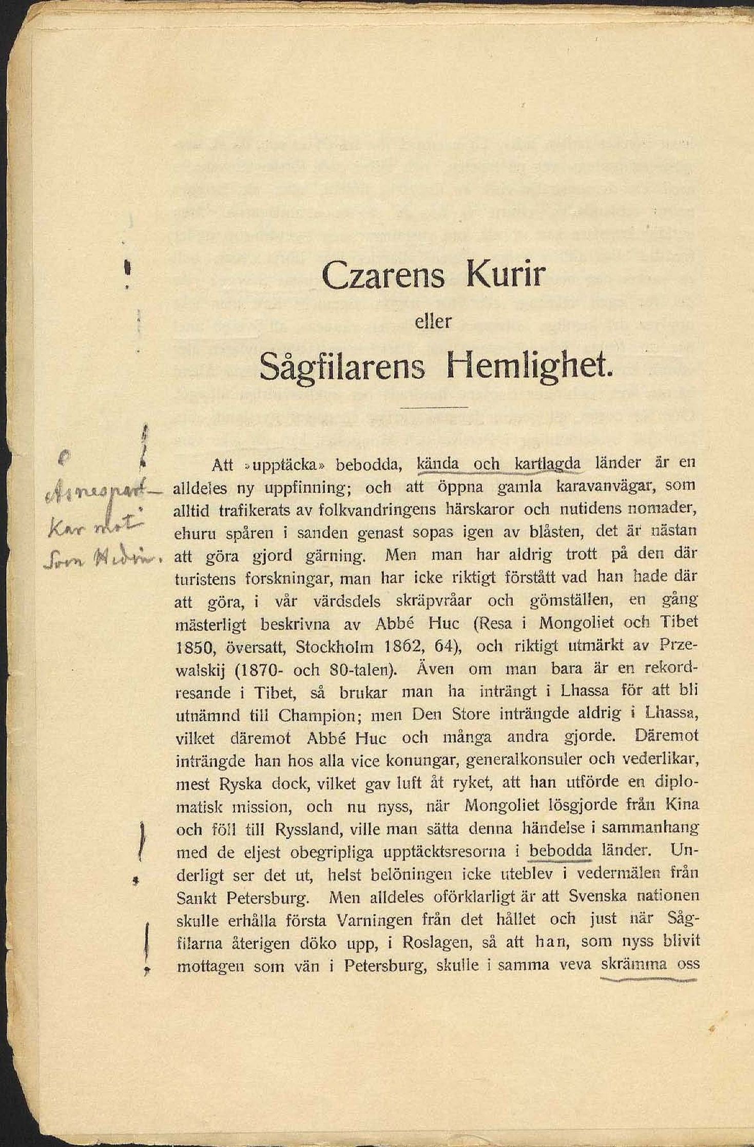 - Czarens Kurir eller Sågfilarens Hemlighet