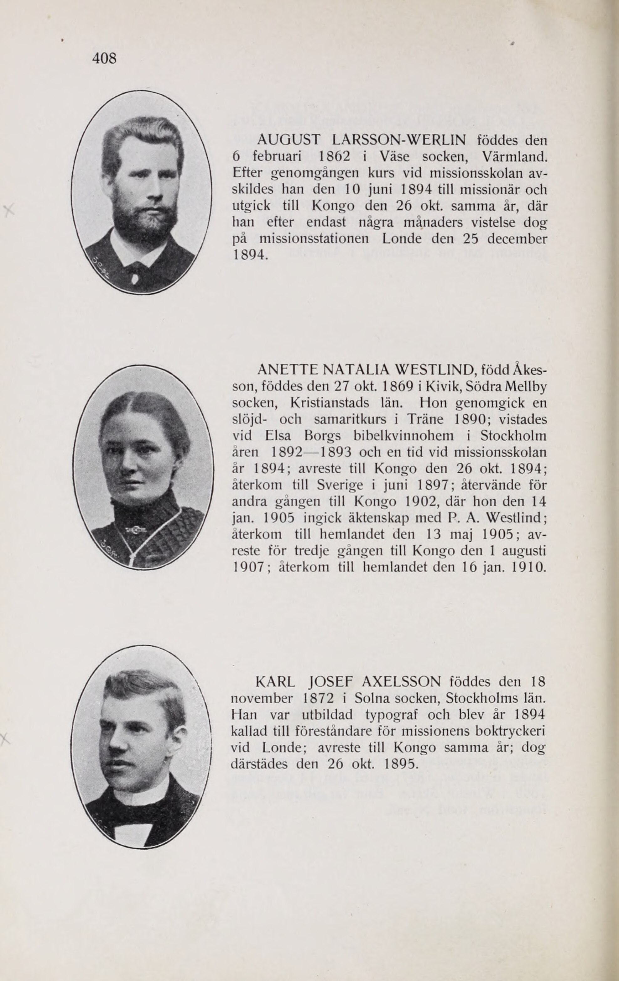 Full resolution (JPEG) - On this page / på denna sida - Korta biografier över Svenska Missionsförbundets kongomissionärer, av Theodor Anderson - August Larsson-Werlin - Anette Natalia Westlind - Karl Josef Axelsson