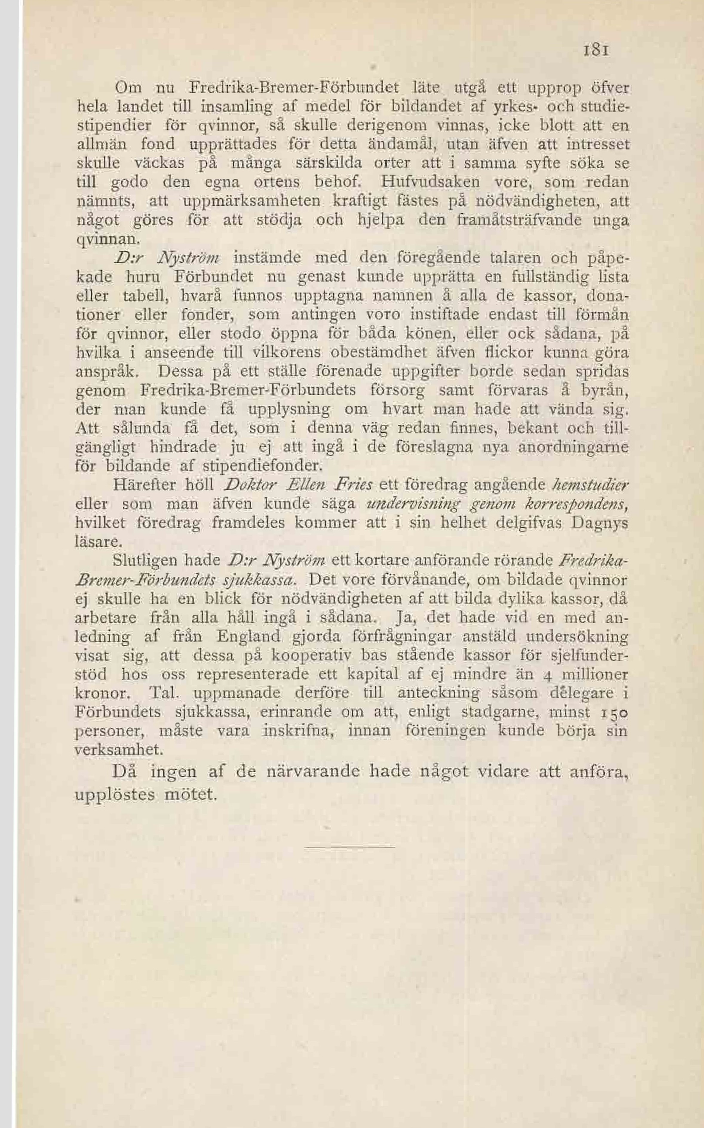 Slutligen hade D:r Nyström ett kortare anförande rörande