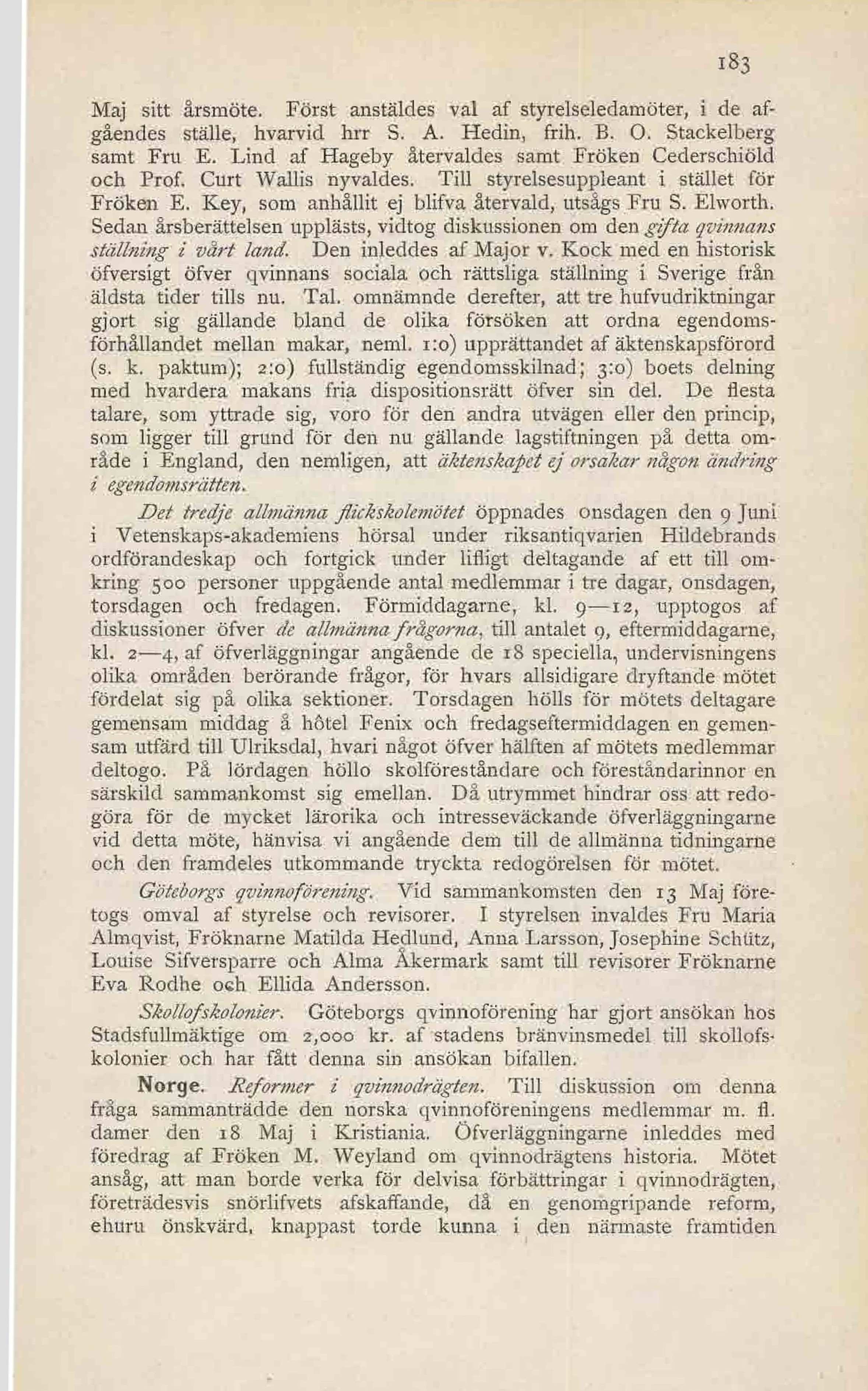 samt Fru E. Lind af Hageby återvaldes samt Fröken Cederschiöld