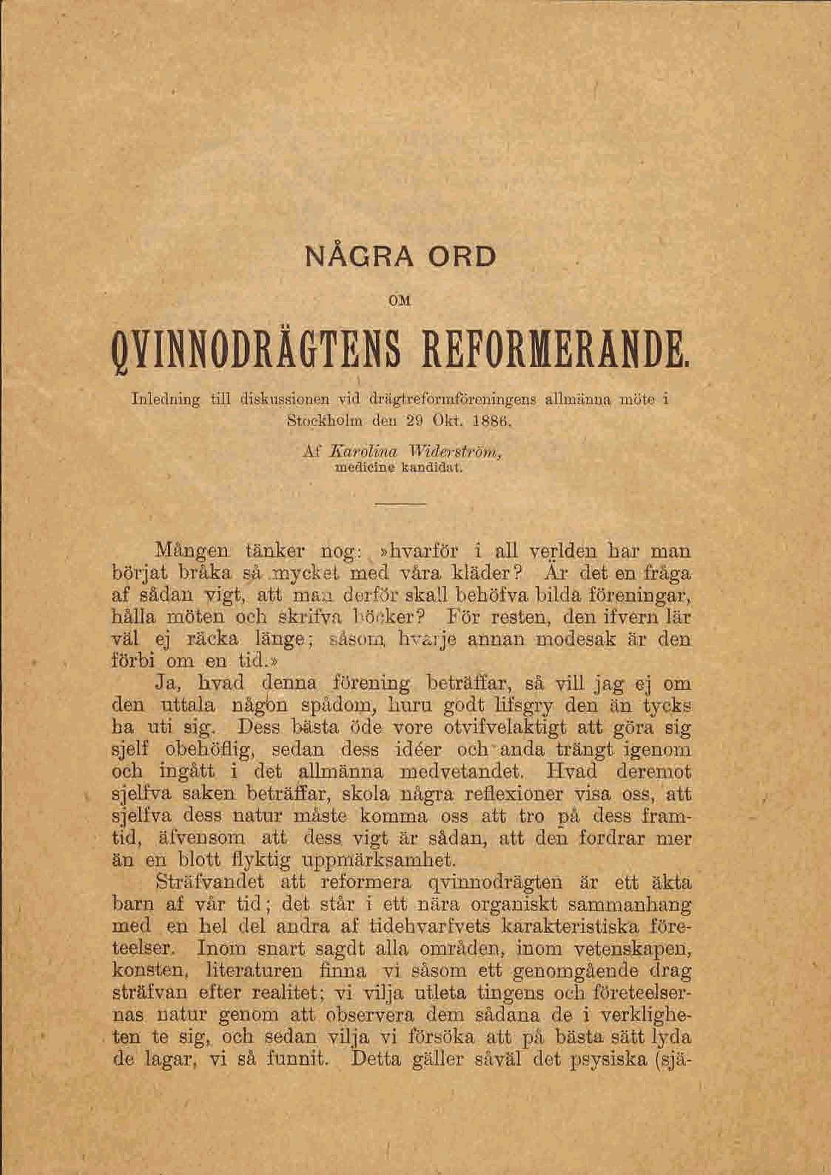 Full resolution (JPEG) - On this page / på denna sida - Häfte II. Februari 1887 - Bilaga. Karolina Widerström, Några ord om qvinnodrägtens reformerande