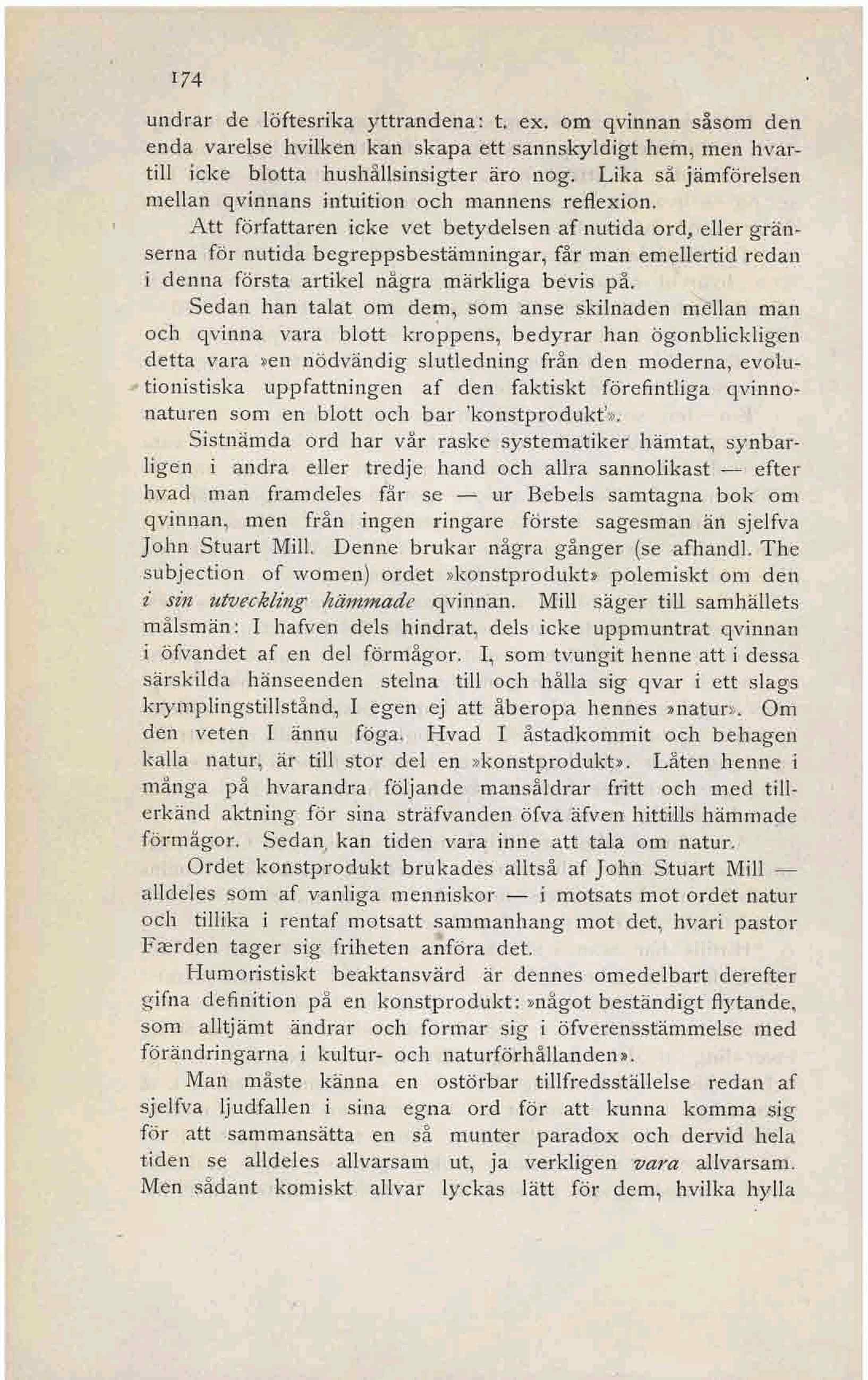subjection of women) ordet »konstprodukt» polemiskt om den