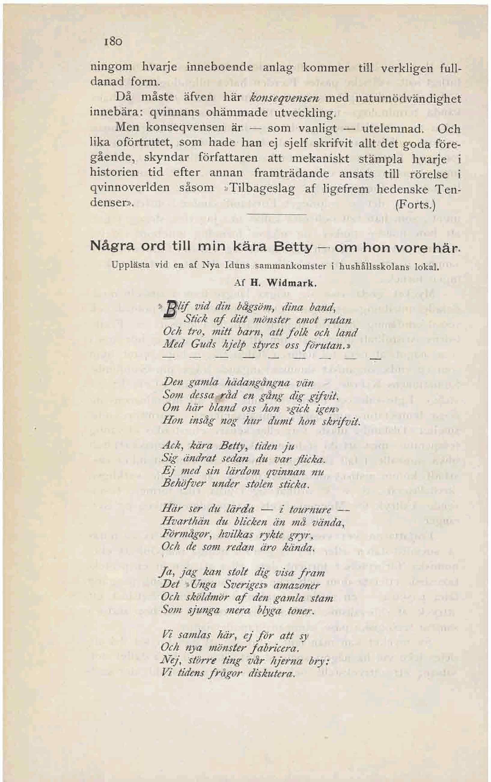 Några ord till min kära Betty — om hon vore här-