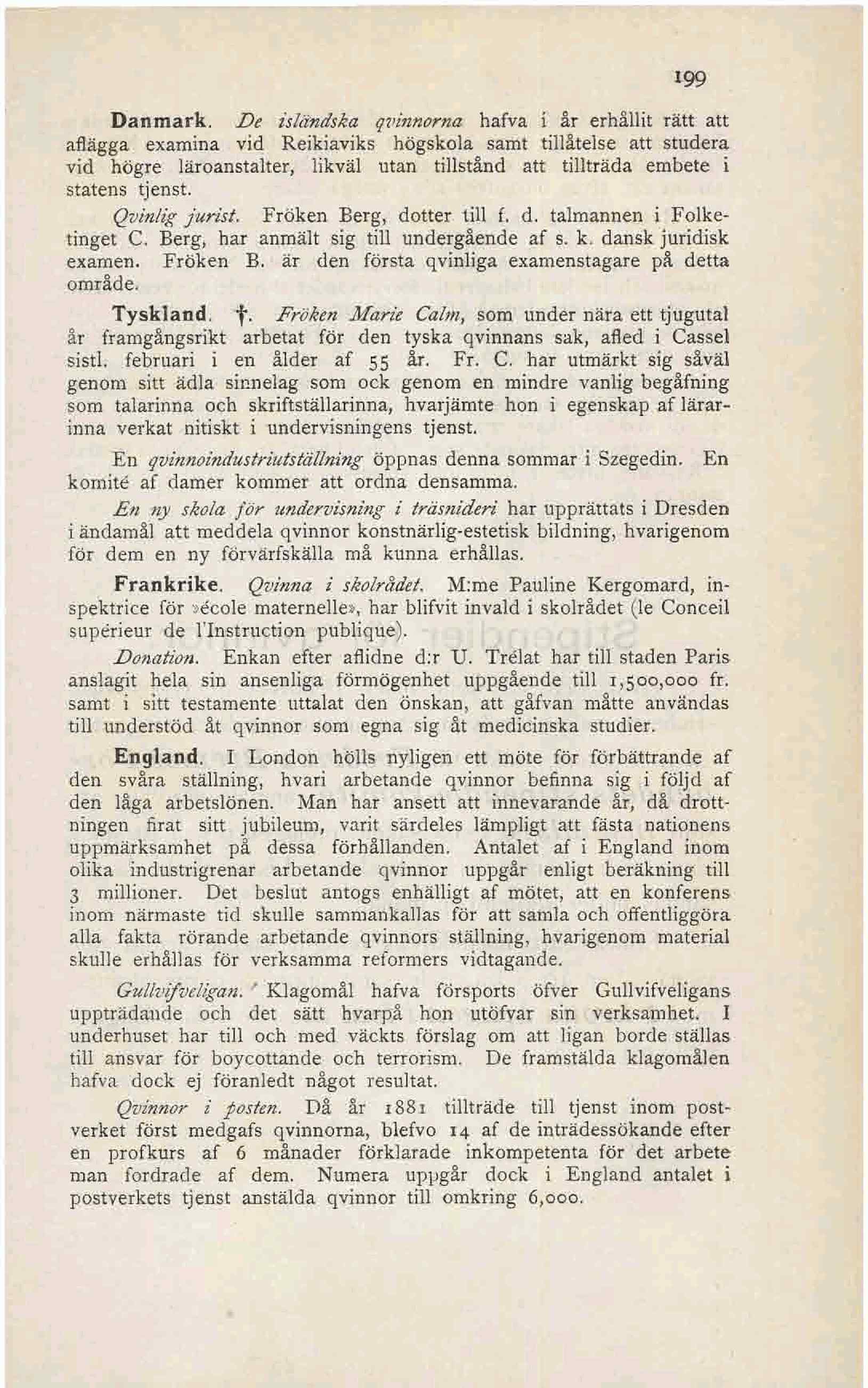 Qvinlig jurist. Fröken Berg, dotter till f. d. talmannen i