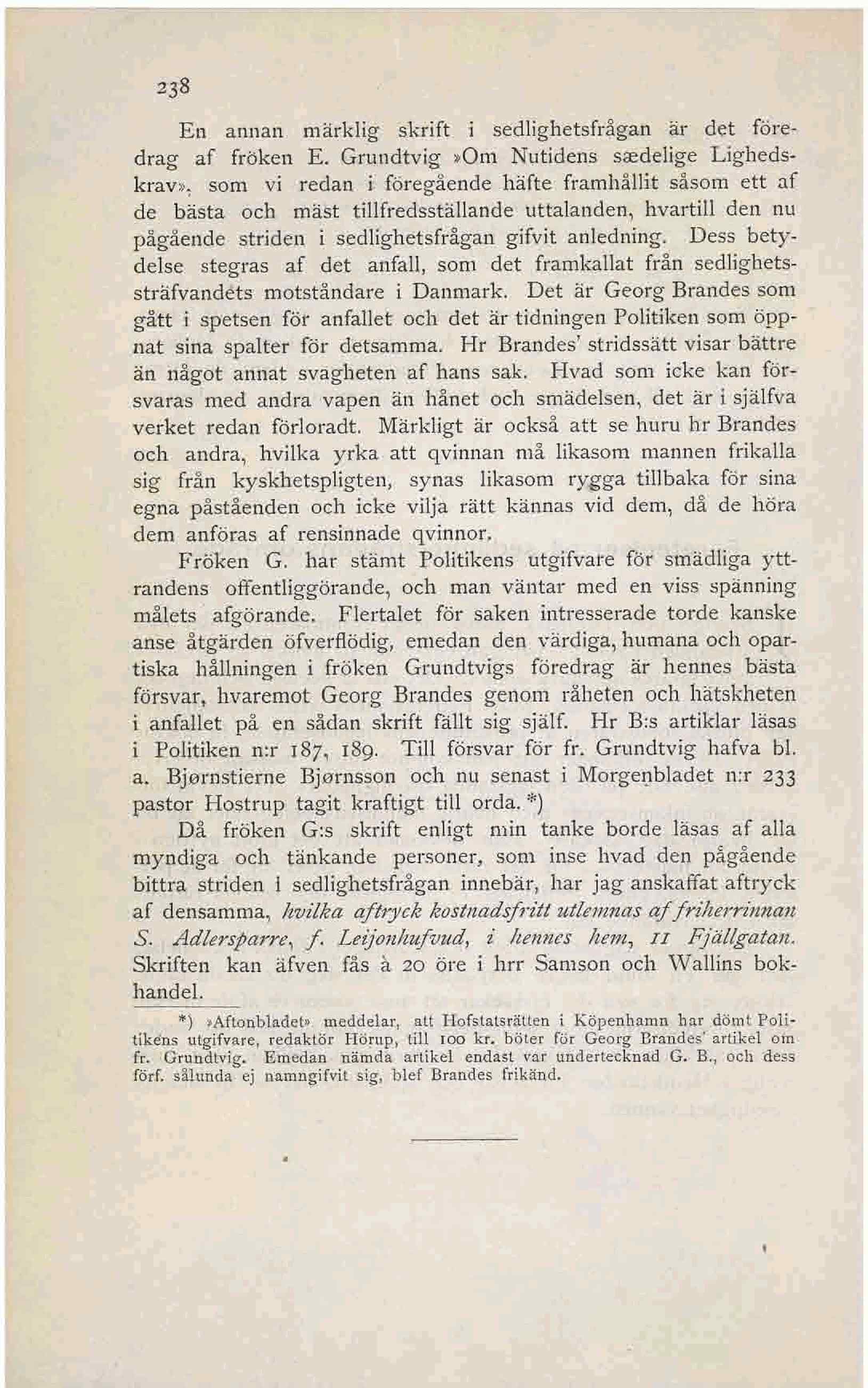 sedlighets-sträfvandets motståndare i Danmark. Det är Georg Brandes som