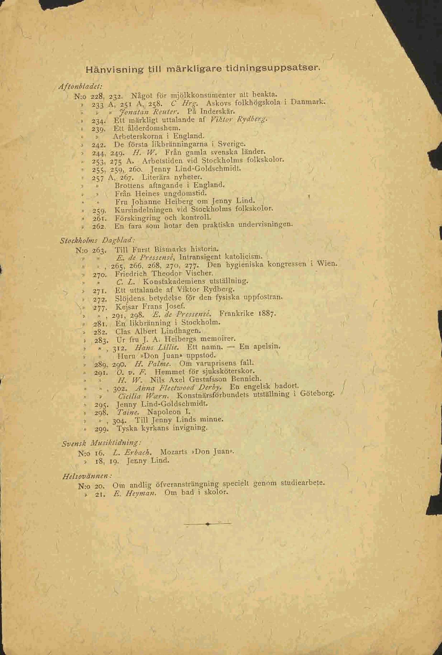 Hänvisning till märkligare tidningsuppsatser.