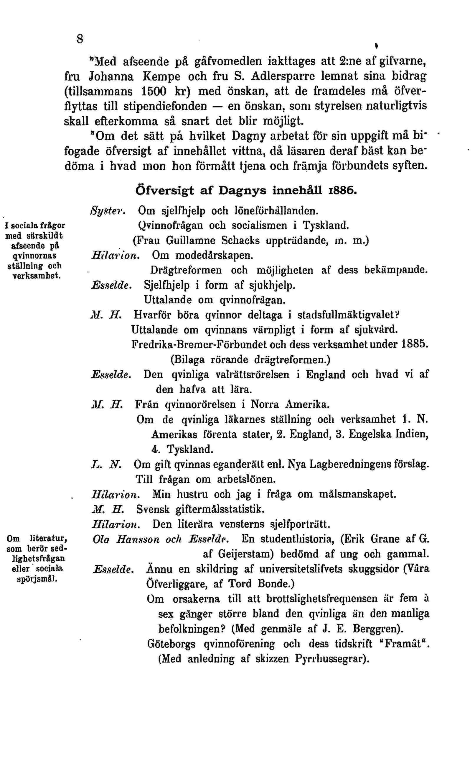 fru Johanna Kempe och fru S. Adlersparre lemnat sina bidrag
