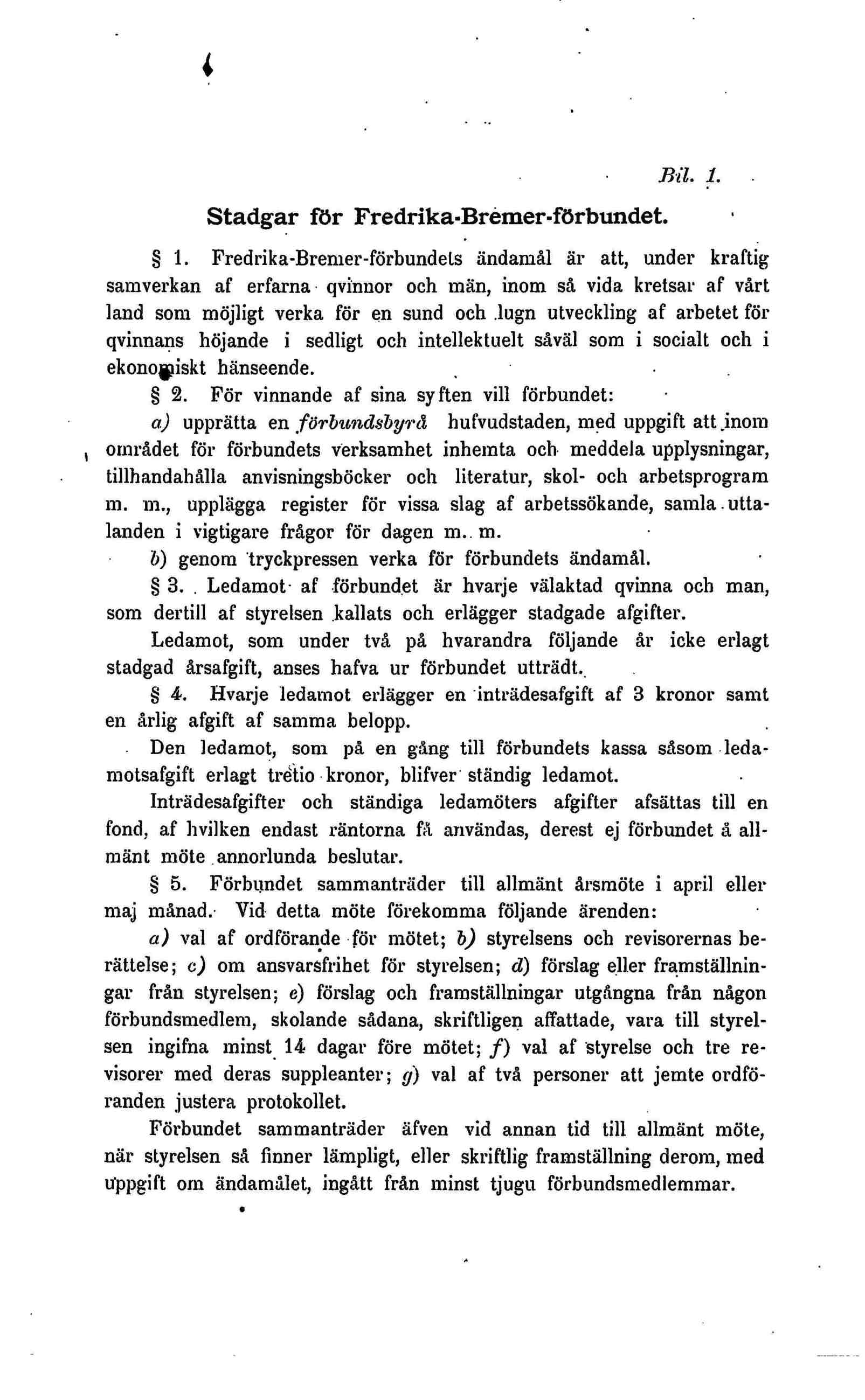 § 1. Fredrika-Bremer-förbundels ändamål är att, under kraftig