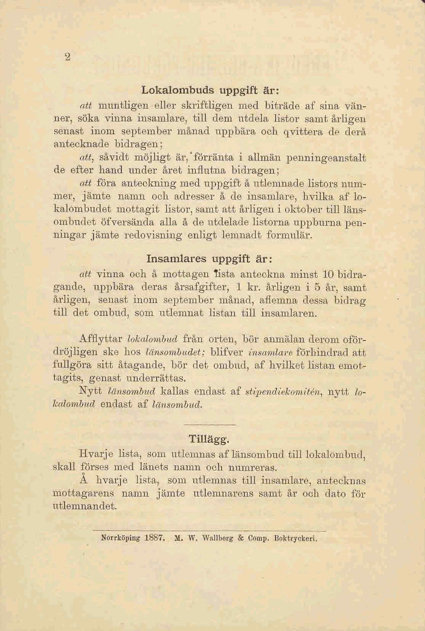 Norrköping 18S7. M. W. Wallberg & Comp. Boktryckeri.