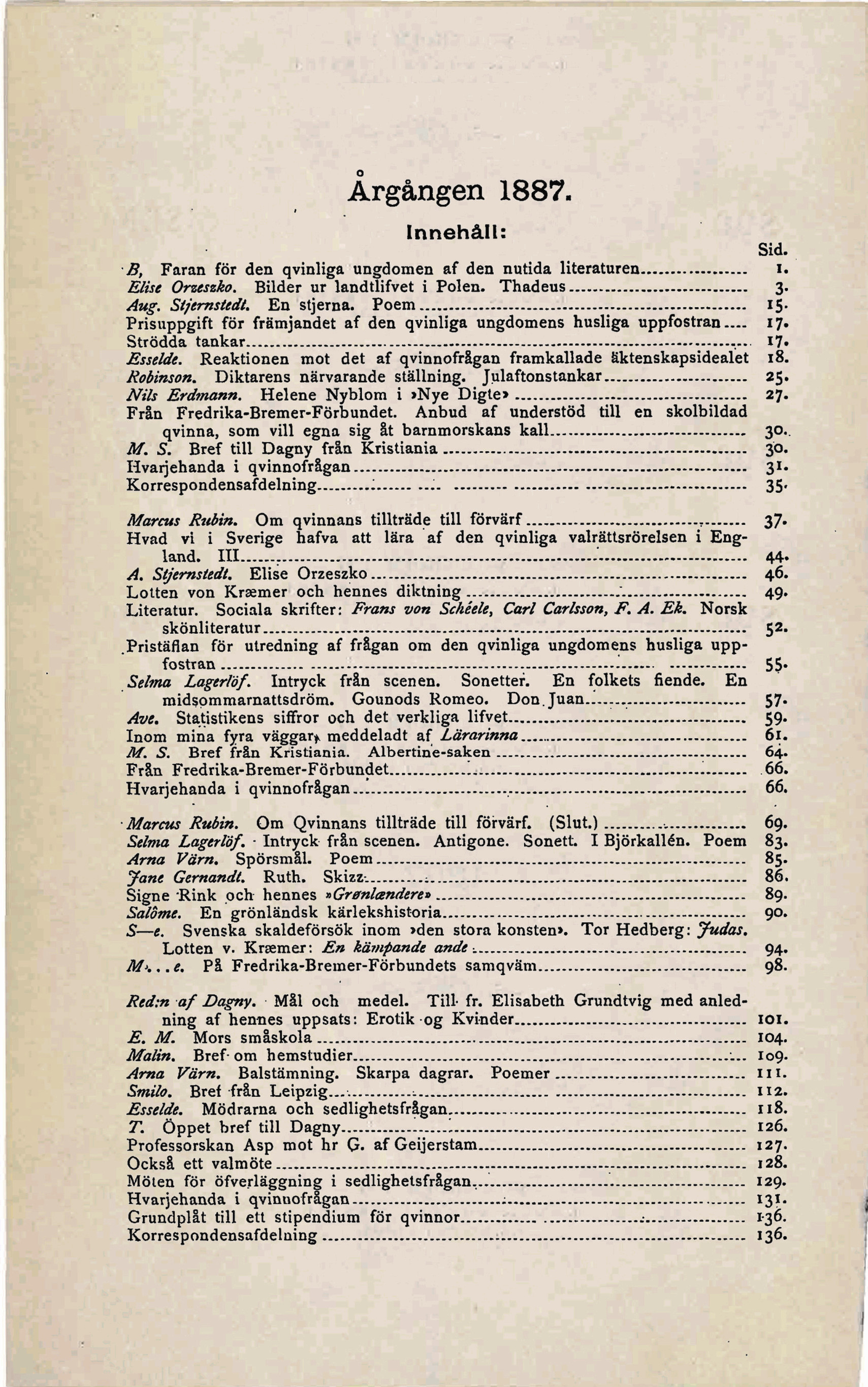 Hvarjehanda i qvinnofrågan....................................................................................................................................31.