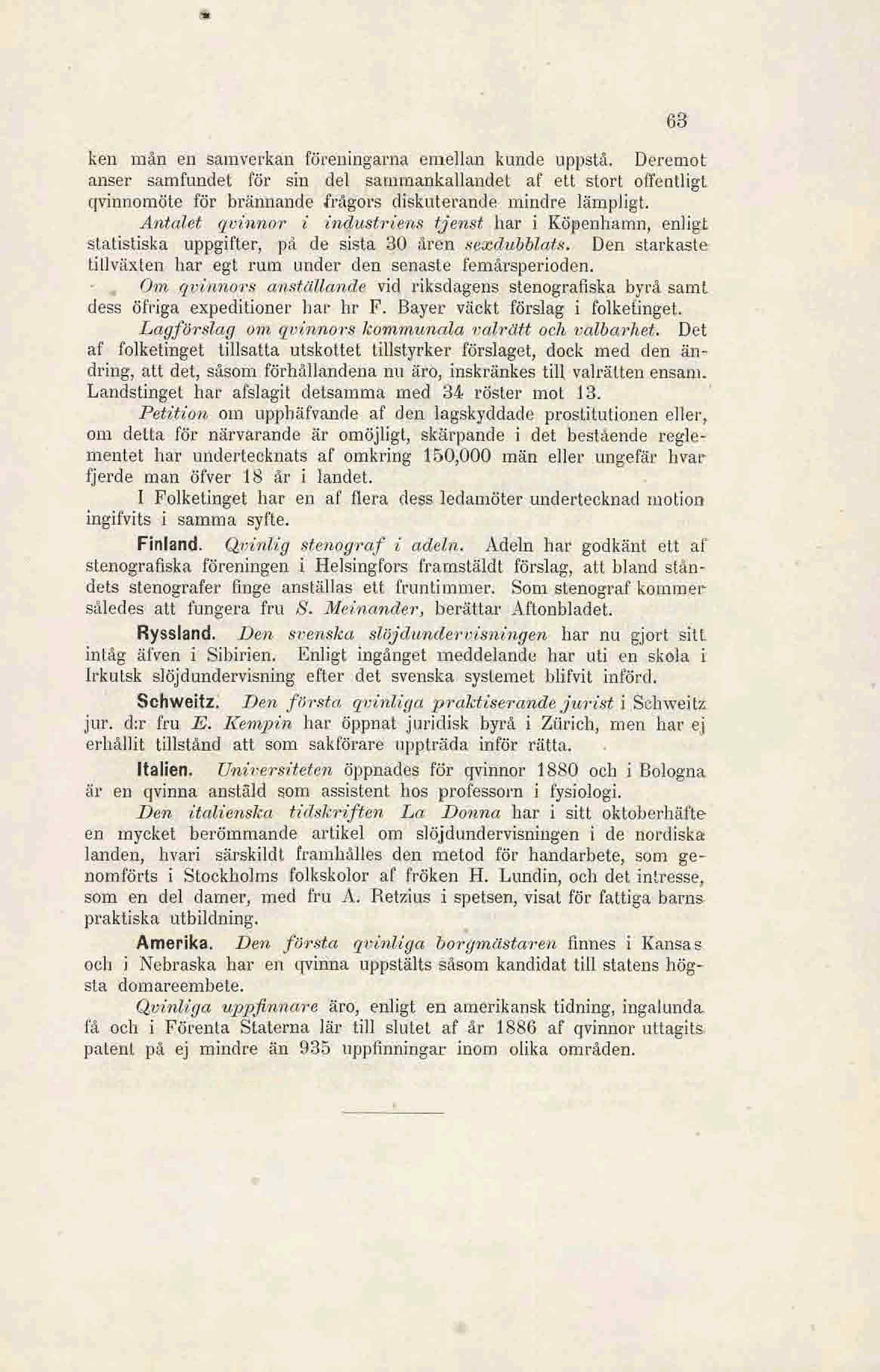 få och i Förenia Staterna lär till slutet af år 1886 af qvinnor uttagits