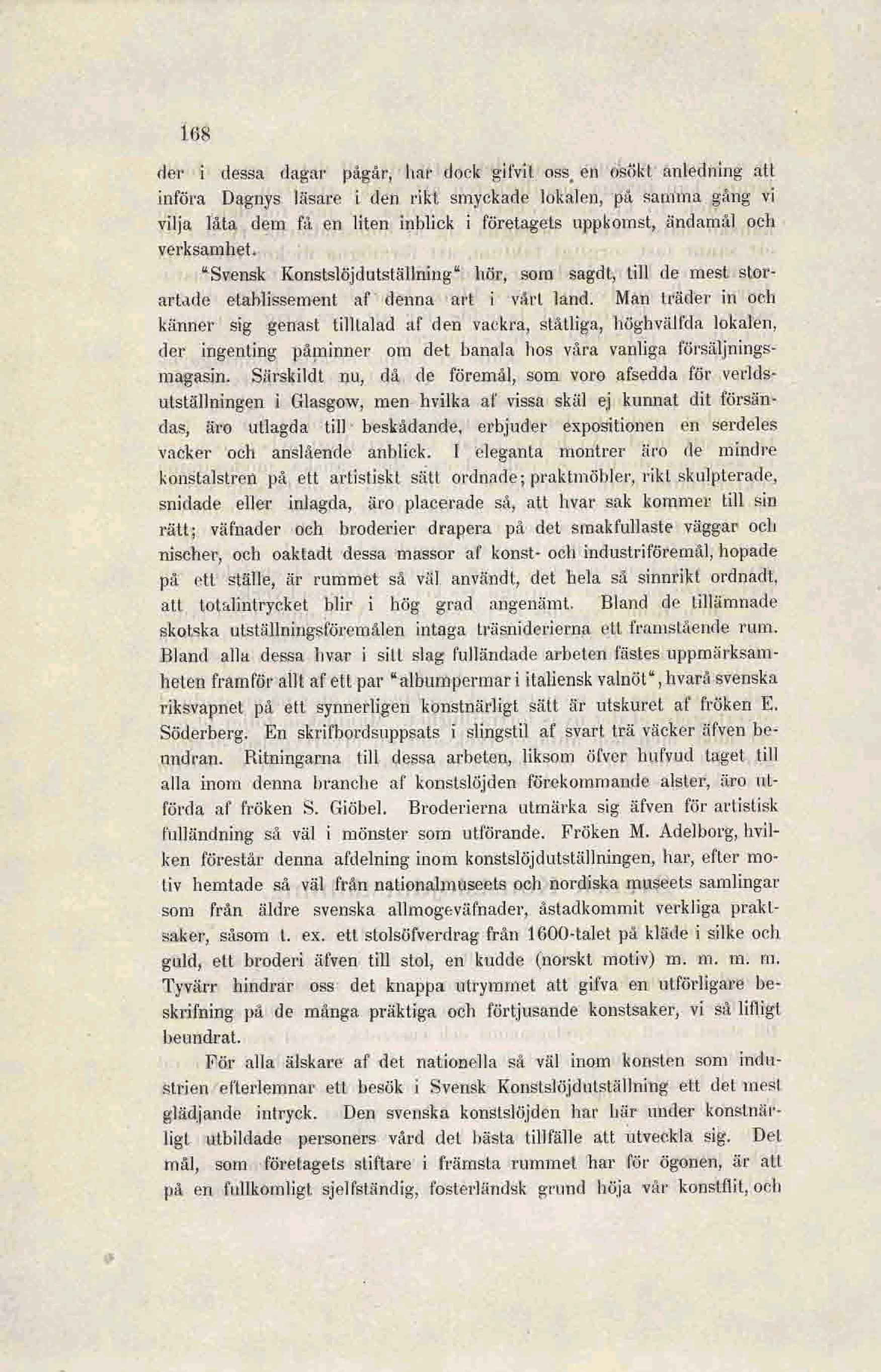 uL-förda af fröken S. Giöbel. Broderierna utmärka sig äfven för artistisk