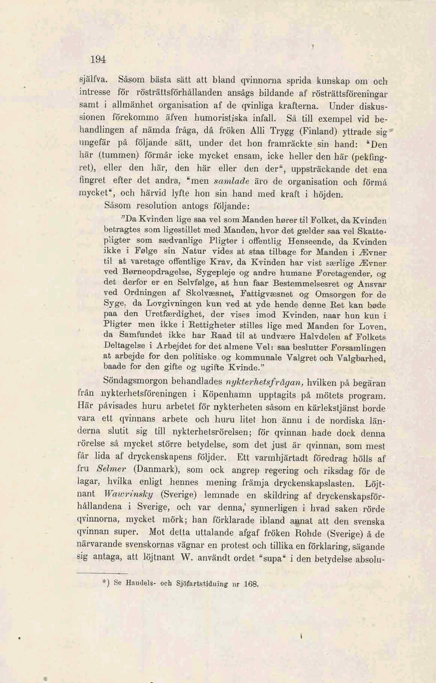 qvinnan super. Mot detta uttalande afgaf fröken Rohde (Sverige) å de
