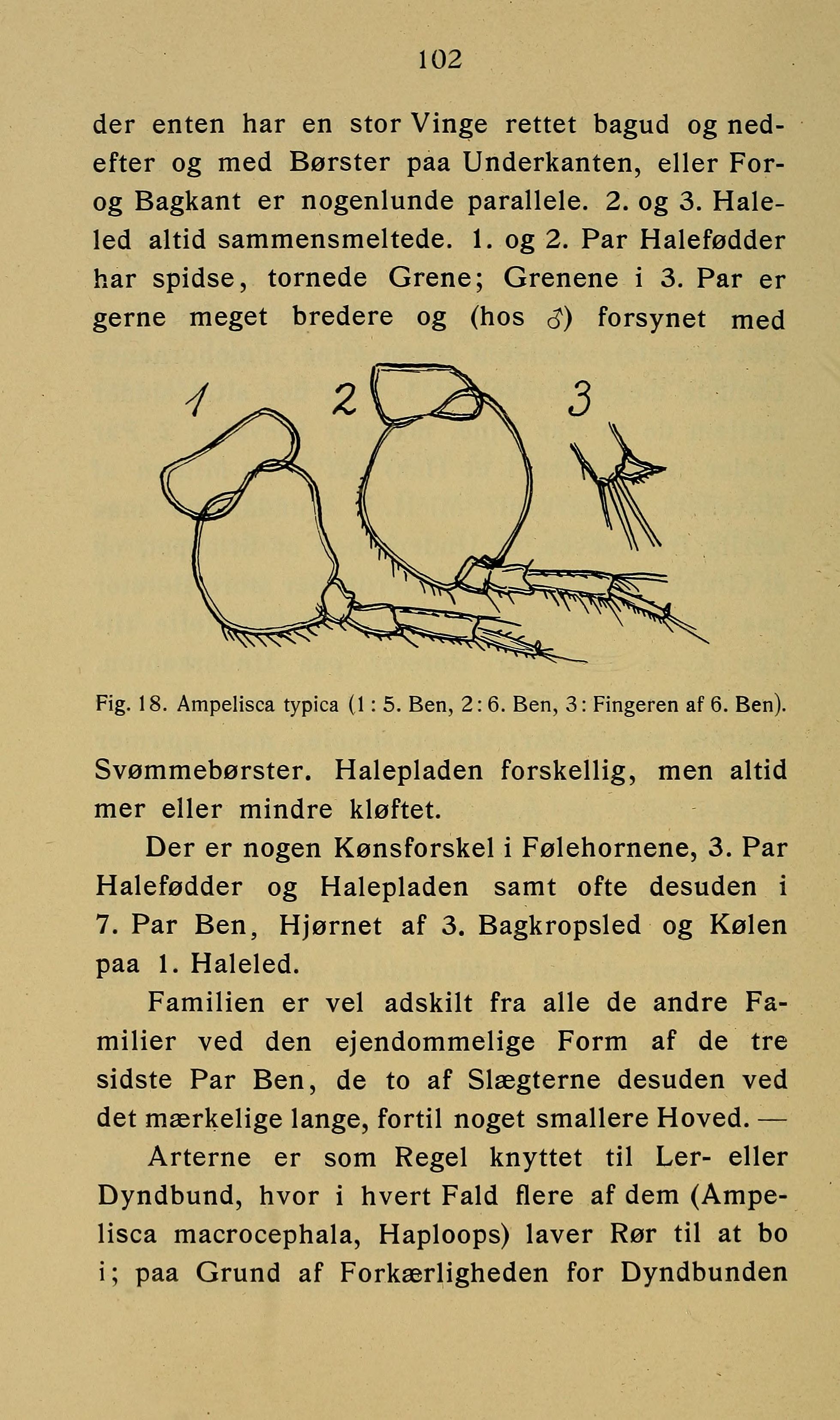 Fig. 18. Ampelisca typica (1:5. Ben, 2: 6. Ben, 3: Fingeren af 6. Ben).