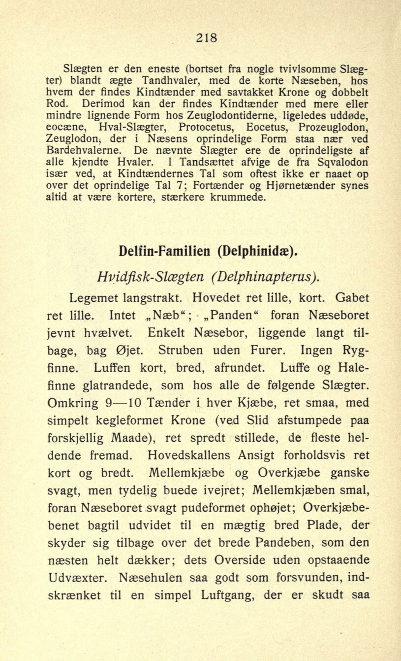 Slægter) blandt ægte Tandhvaler, med de korte Næseben, hos