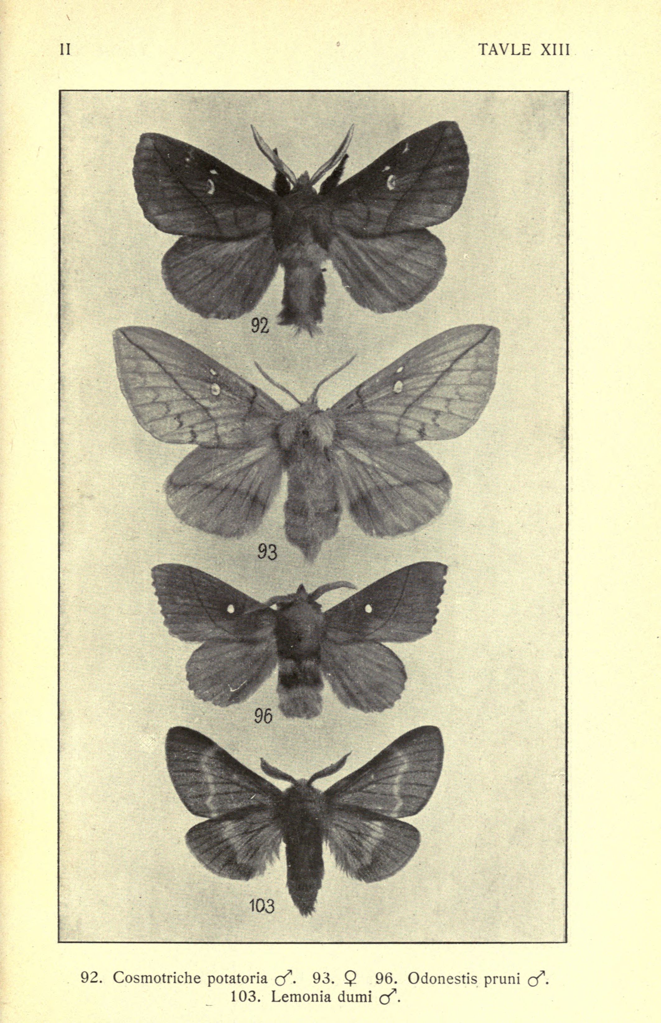 92. Cosmotriche potatoria çf. 93. $ 96. Odonestis pruni çf,