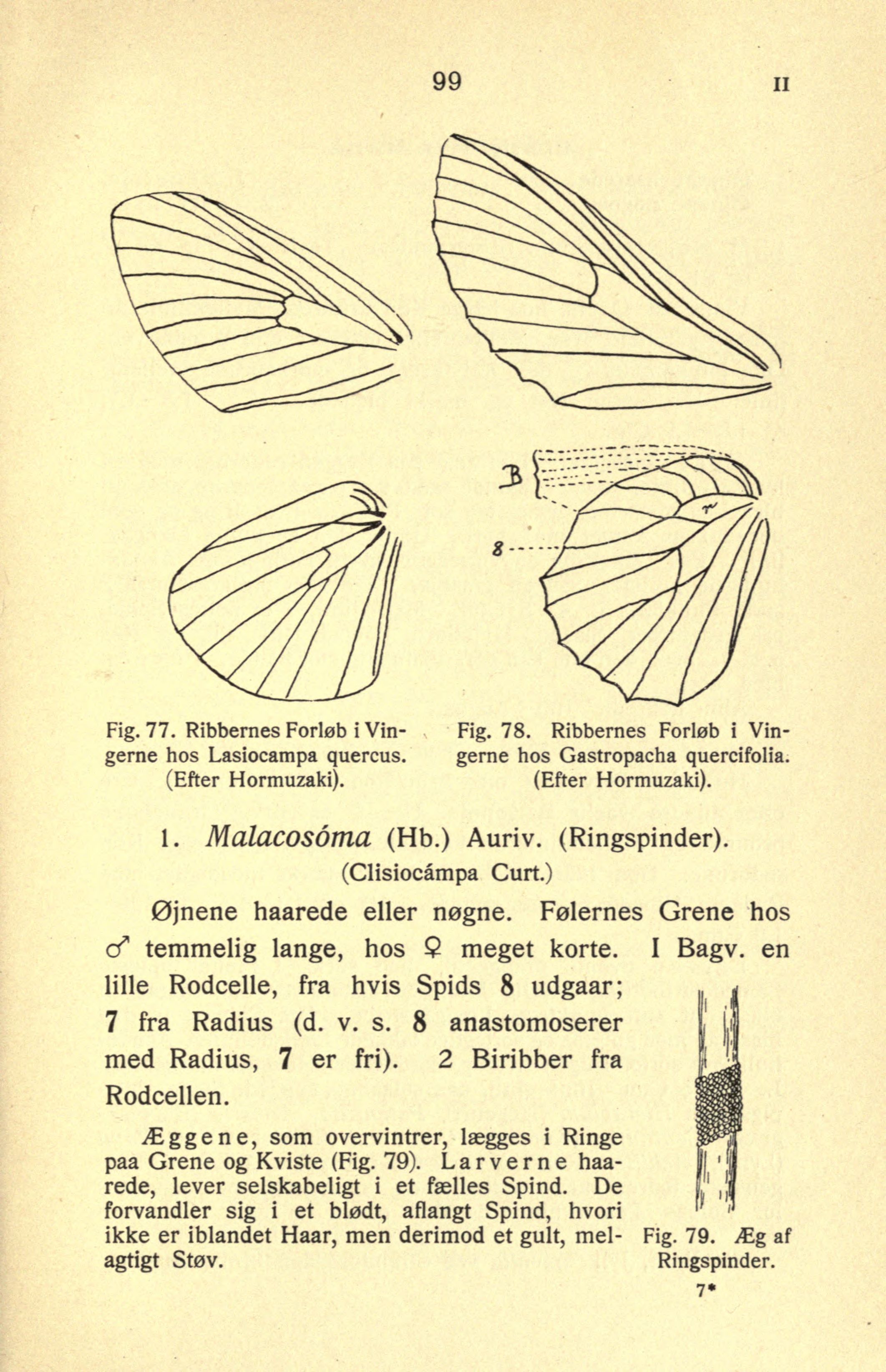1. Malacosöma (Hb.) Auriv. (Ringspinder).