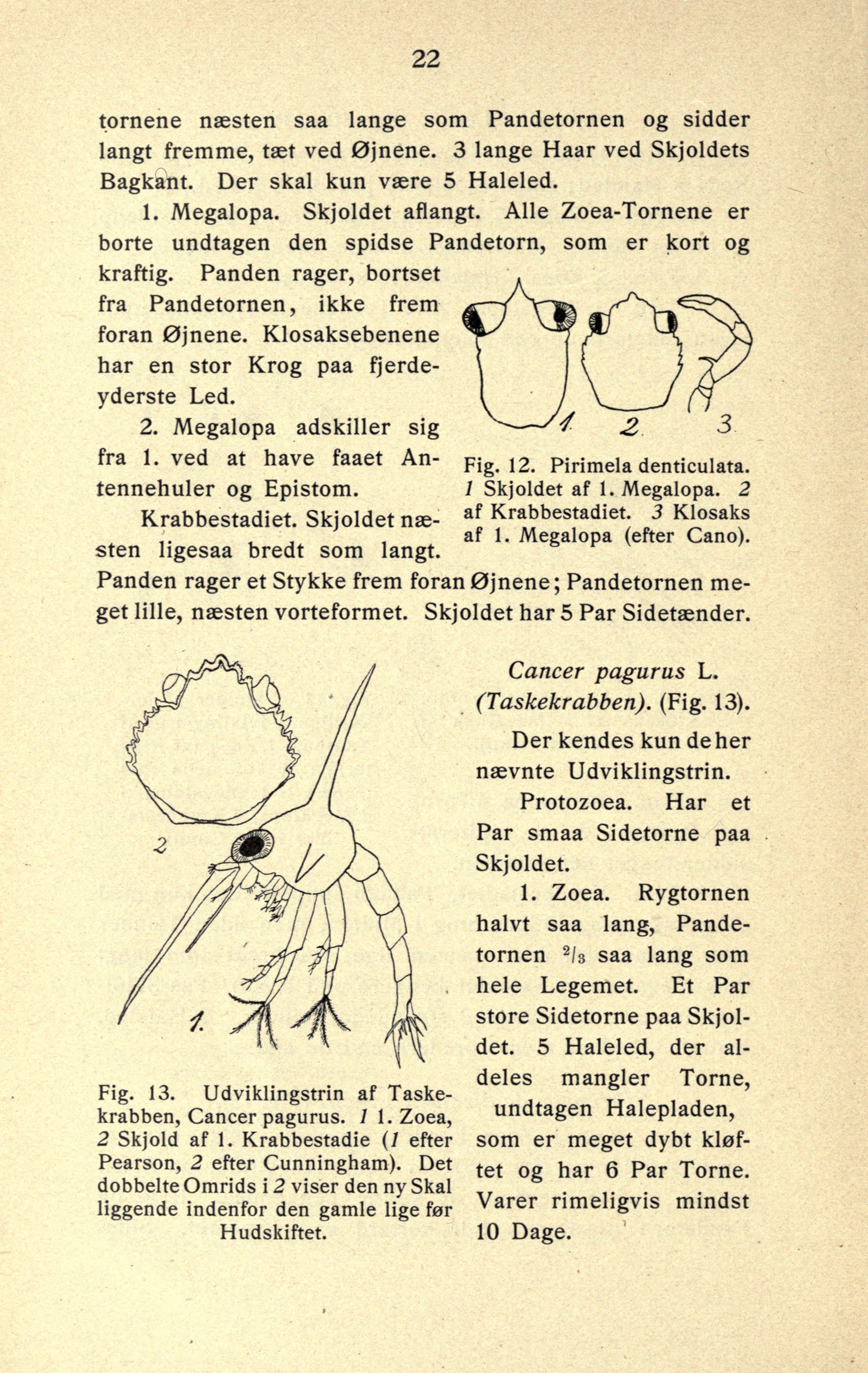 Taskekrabben, Cancer pagurus. / 1. Zoea,