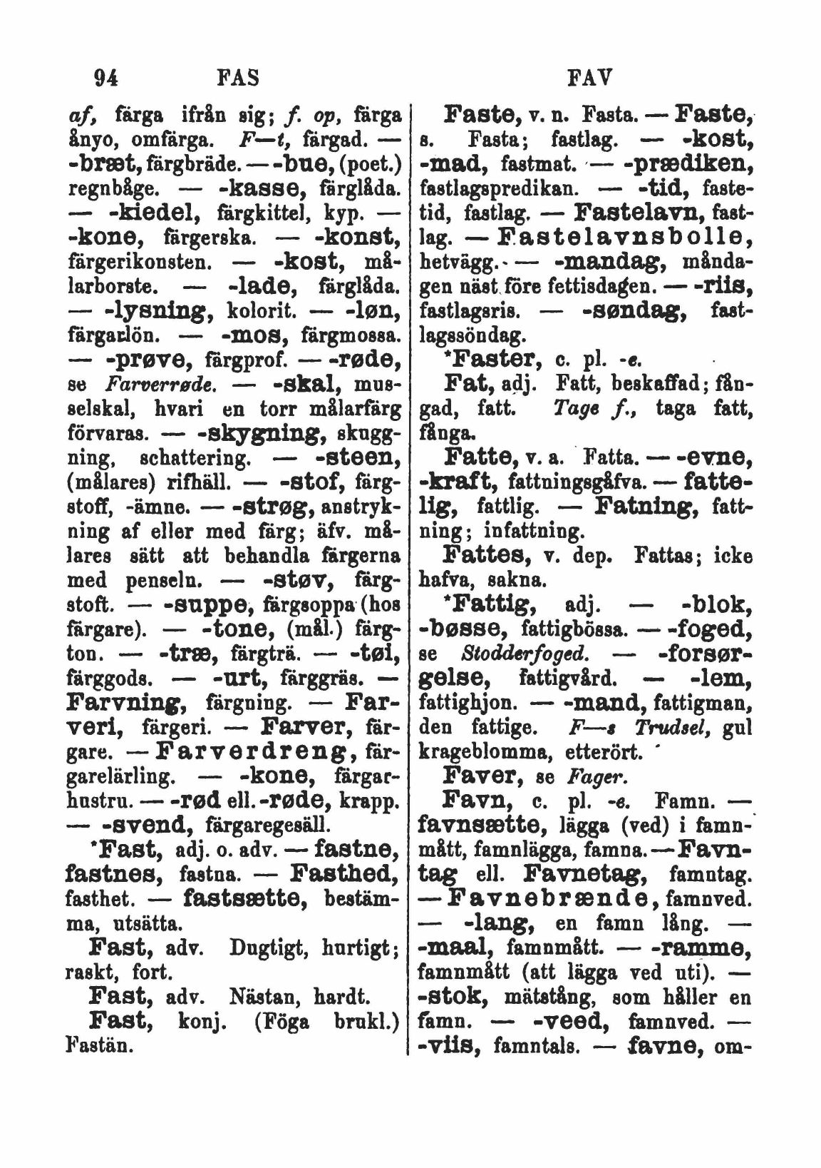 Faste, v. n. Fasta. — Faste,