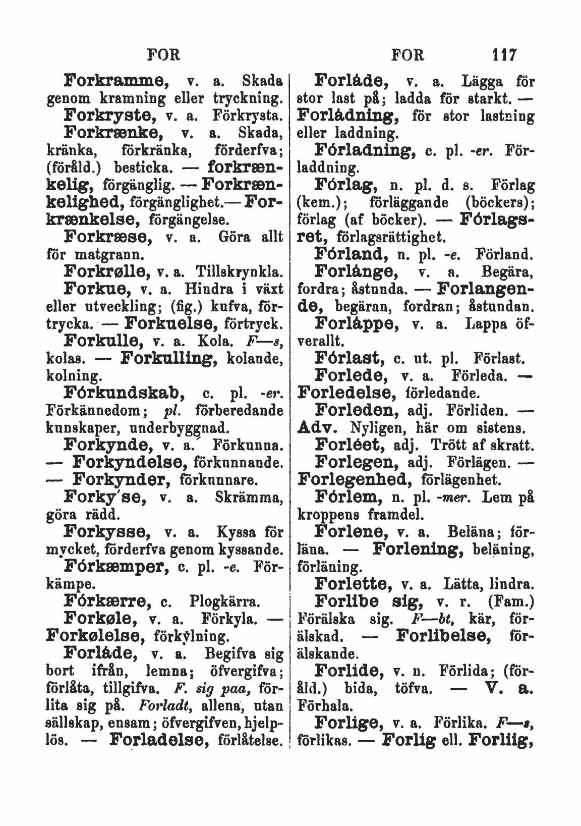 öfvergifven,hjelplös. — Forladelse, förlåtelse.
