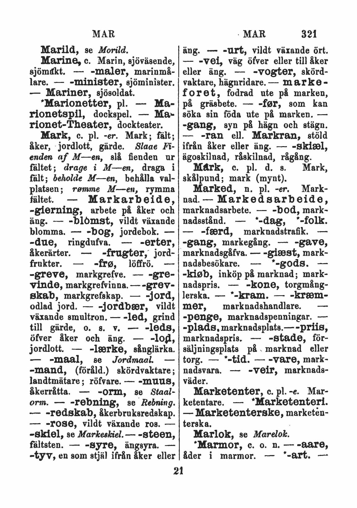 Mark, c. pl. -er. Mark; fält;
