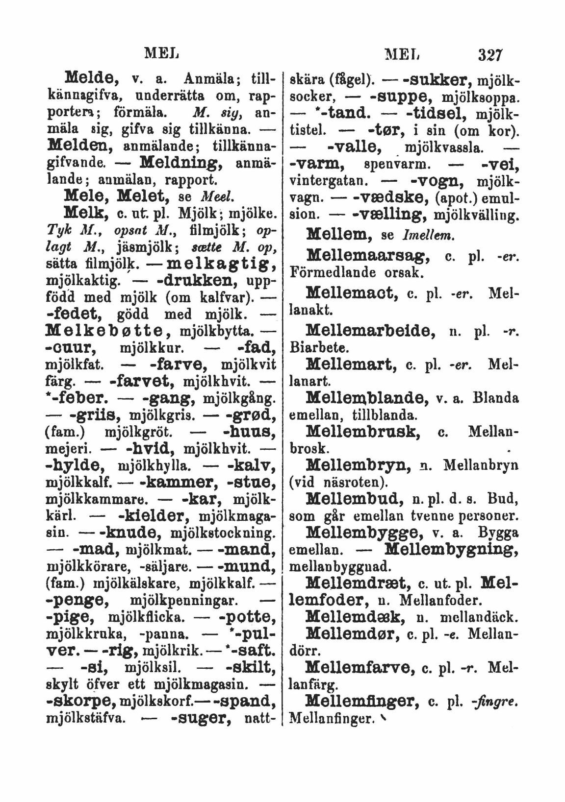 Melk, c. ut. pl. Mjölk; mjölke.