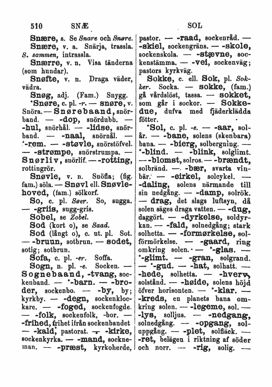 "Snøre, c. pl. -r. — snøre, v.
