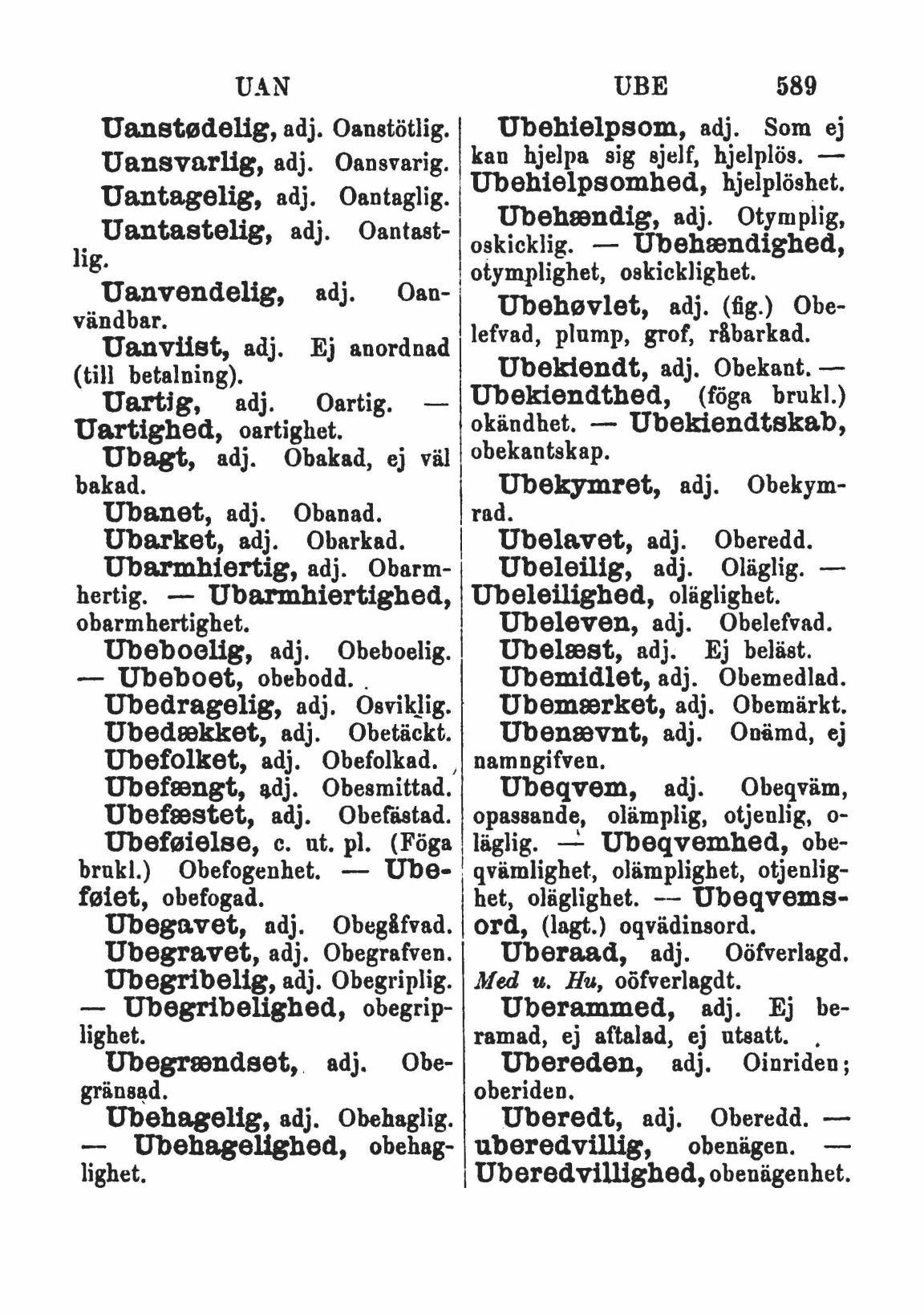Ubehagelig, adj. Obehaglig.