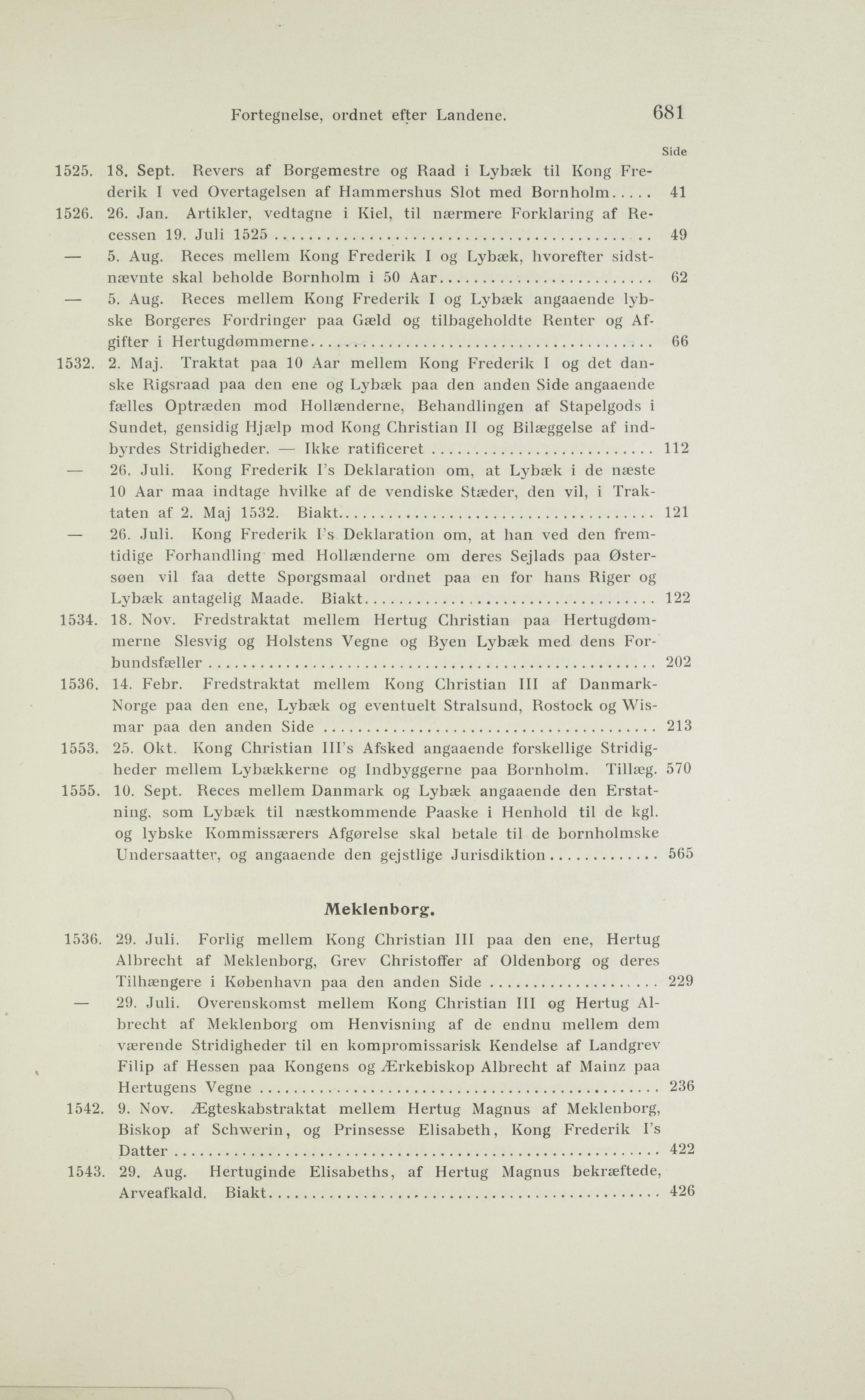Full resolution (JPEG) - On this page / på denna sida - Fortegnelse over de aftrykte Aktstykker, ordnet efter Landene - Lybæk - Meklenborg