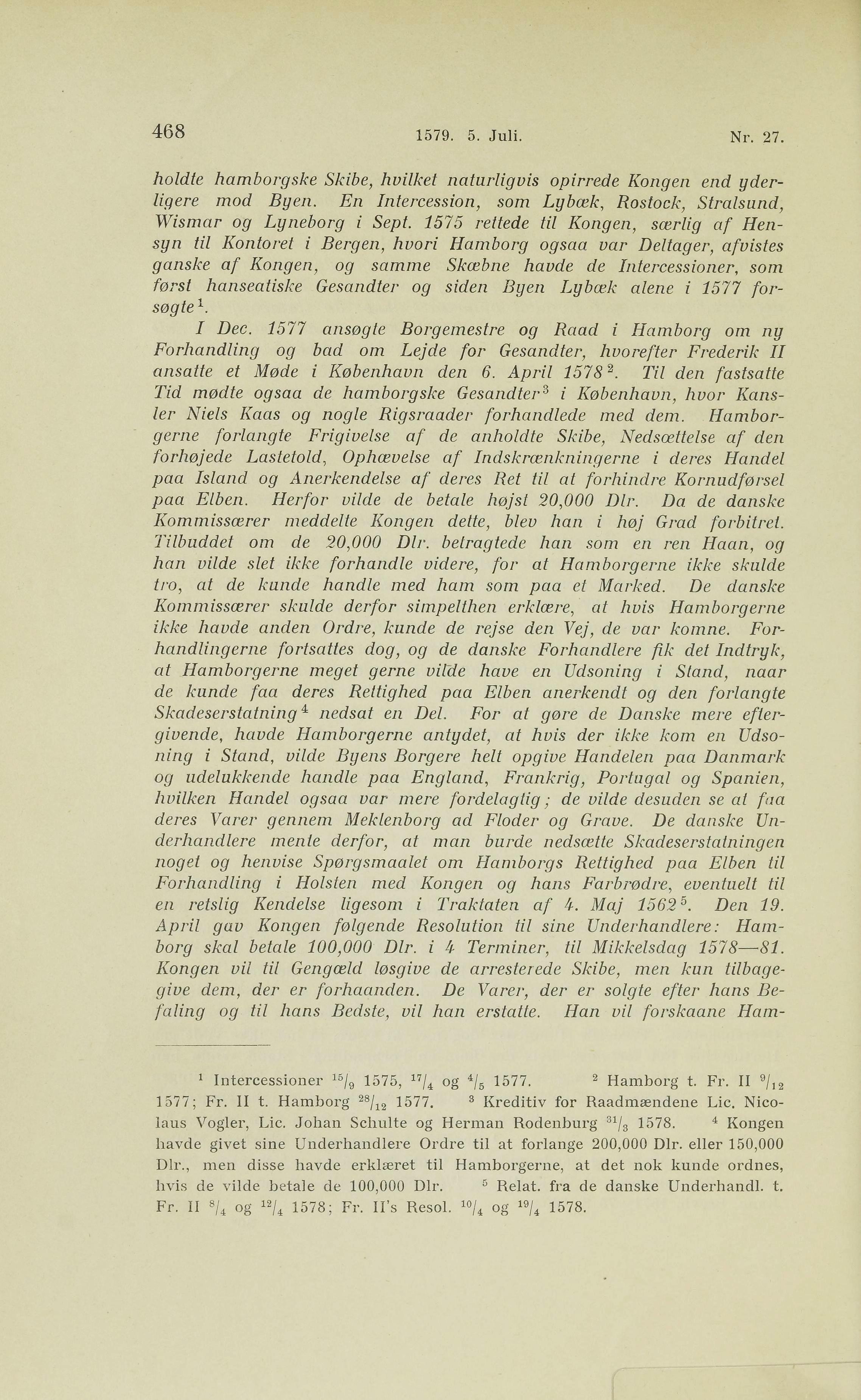 1 Intercessioner 15/9 1575, 17/4 og 4/s 1577. 2 Hamborg t. Fr. II 9/ 12