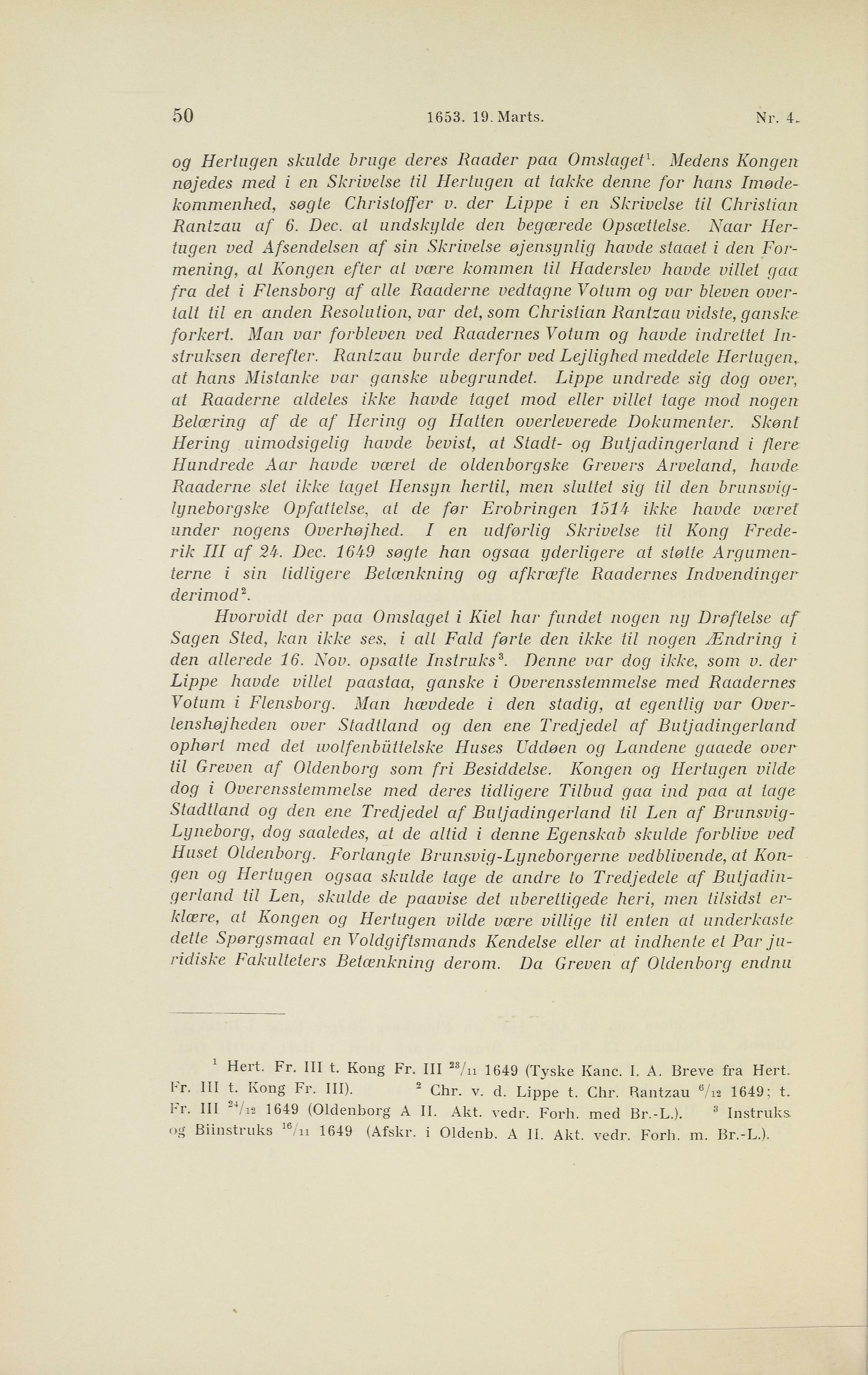og Biinstruks 11 1649 (Afskr. i Oldenb. A II. Akt. vedr. Forh. m. Br.-L.).