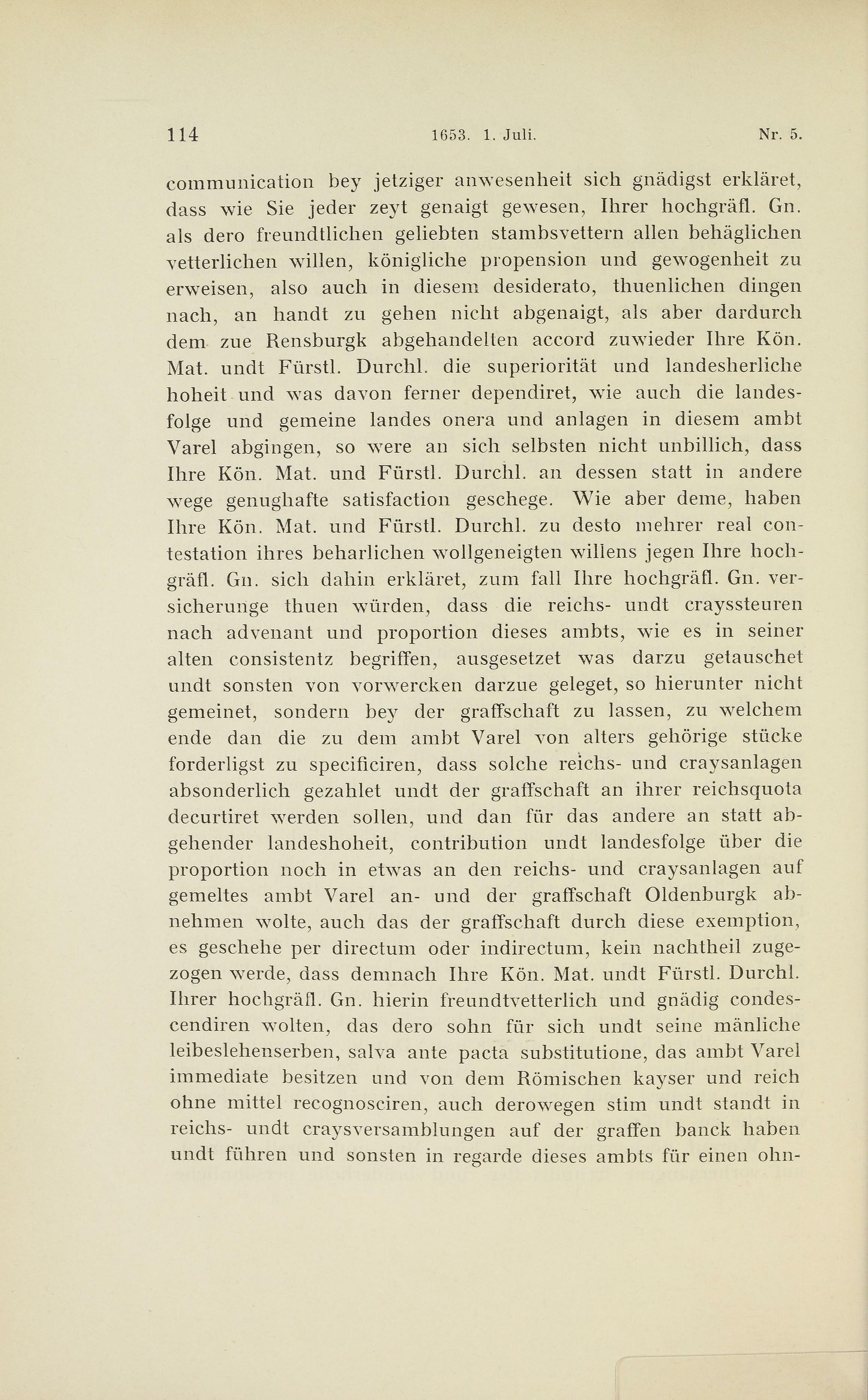 gemeltes ambt Varel an- und der graffschaft Oldenburgk ab