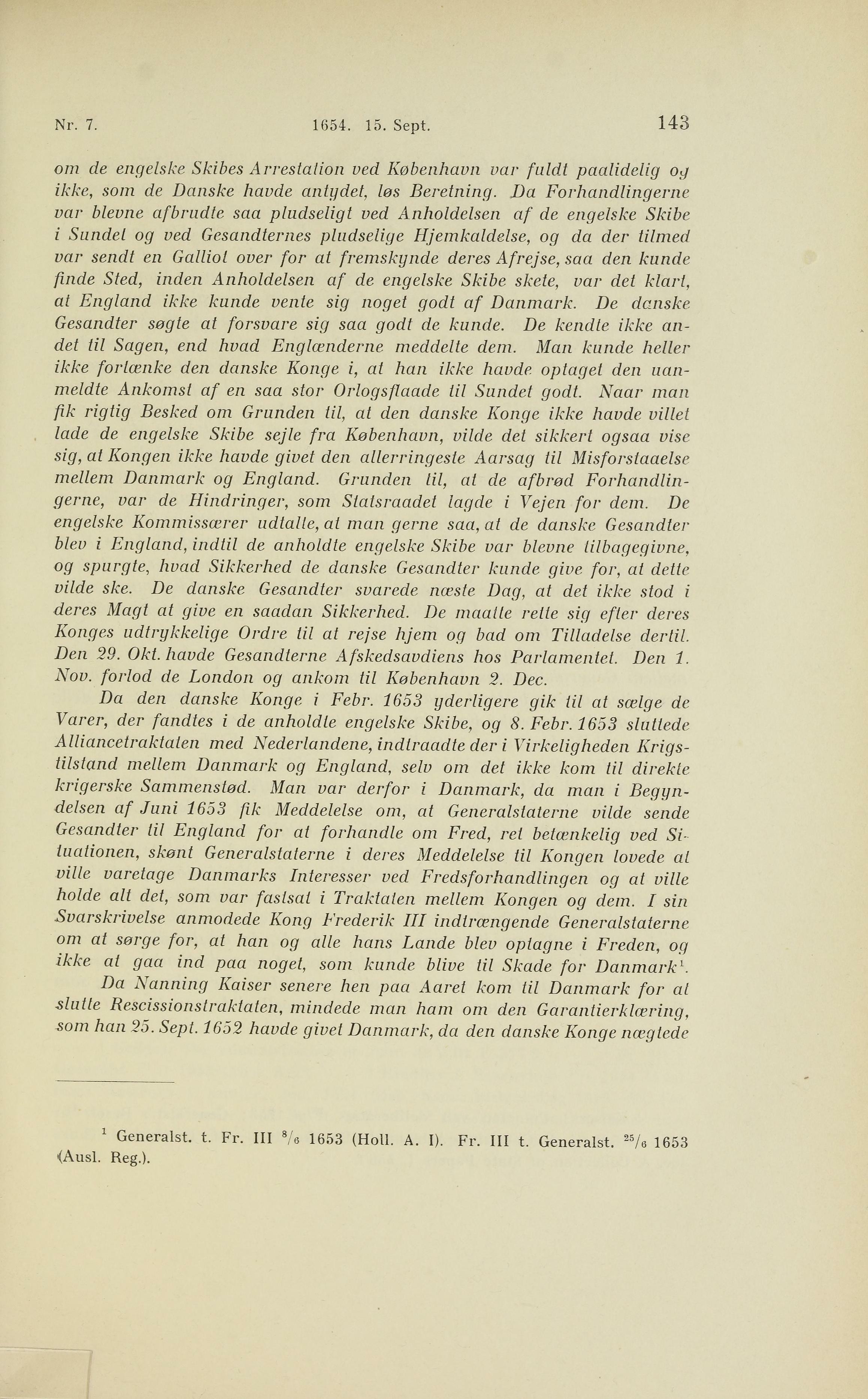 1 Generalst. t. Fr. III 8/e 1653 (Holl. A. I). Fr. III t. Generalst. 25/ø 1653