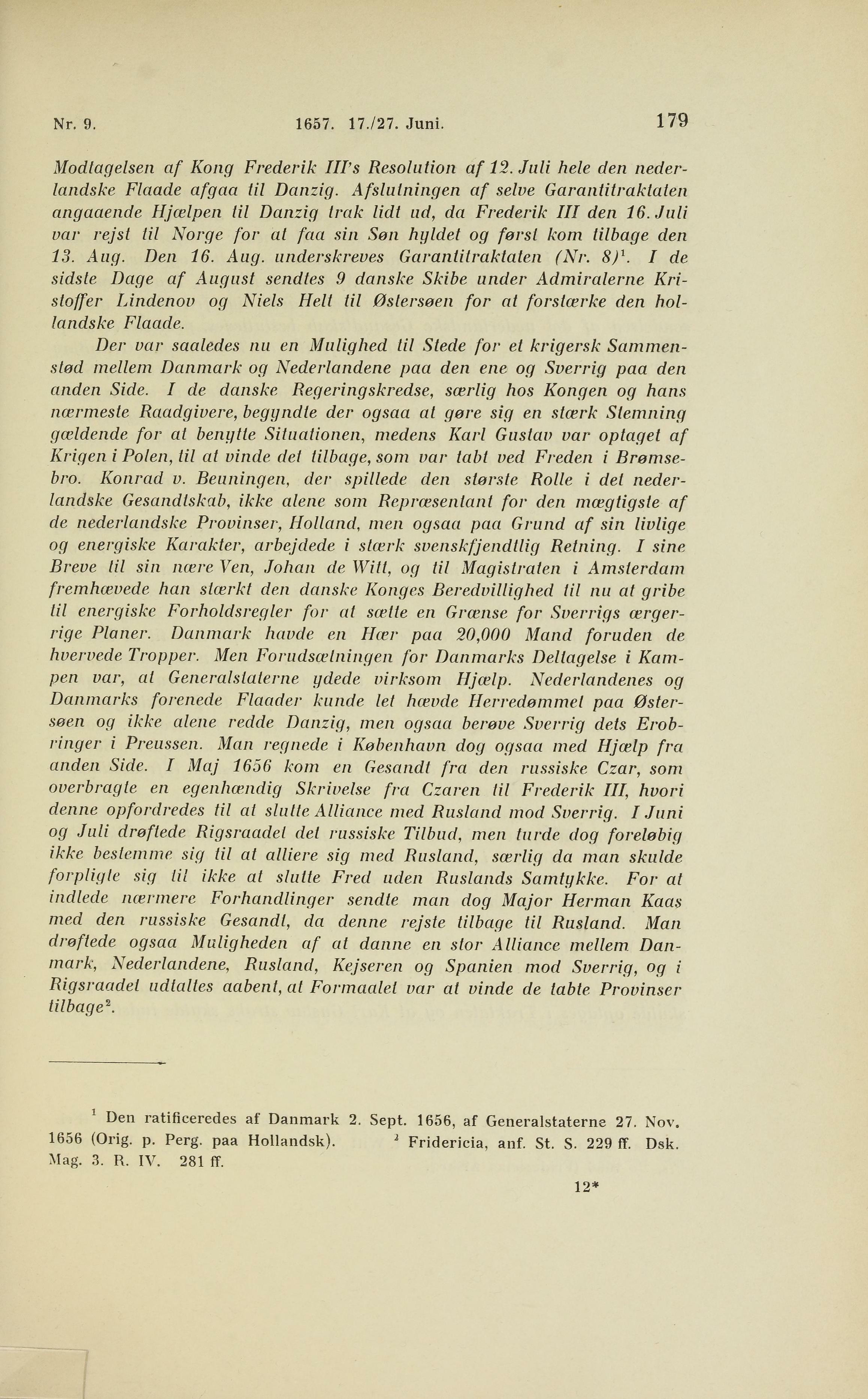 1 Den ratificeredes af Danmark 2. Sept. 1656, af Generalstaterne 27. Nov.