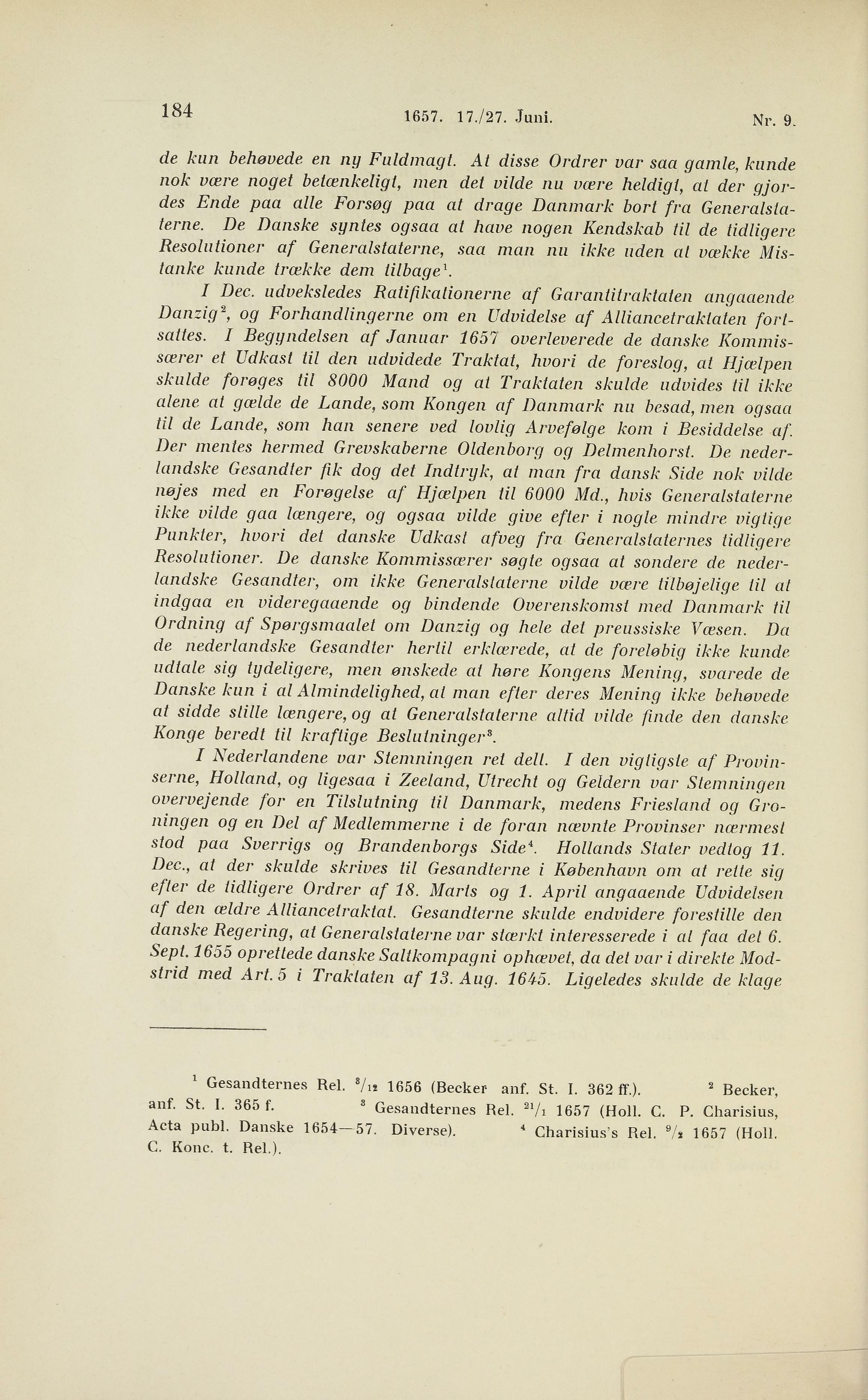 Acta publ. Danske 1654—57. Diverse). 4 Charisius’s Rei. 9/s 1657 (Holl.
