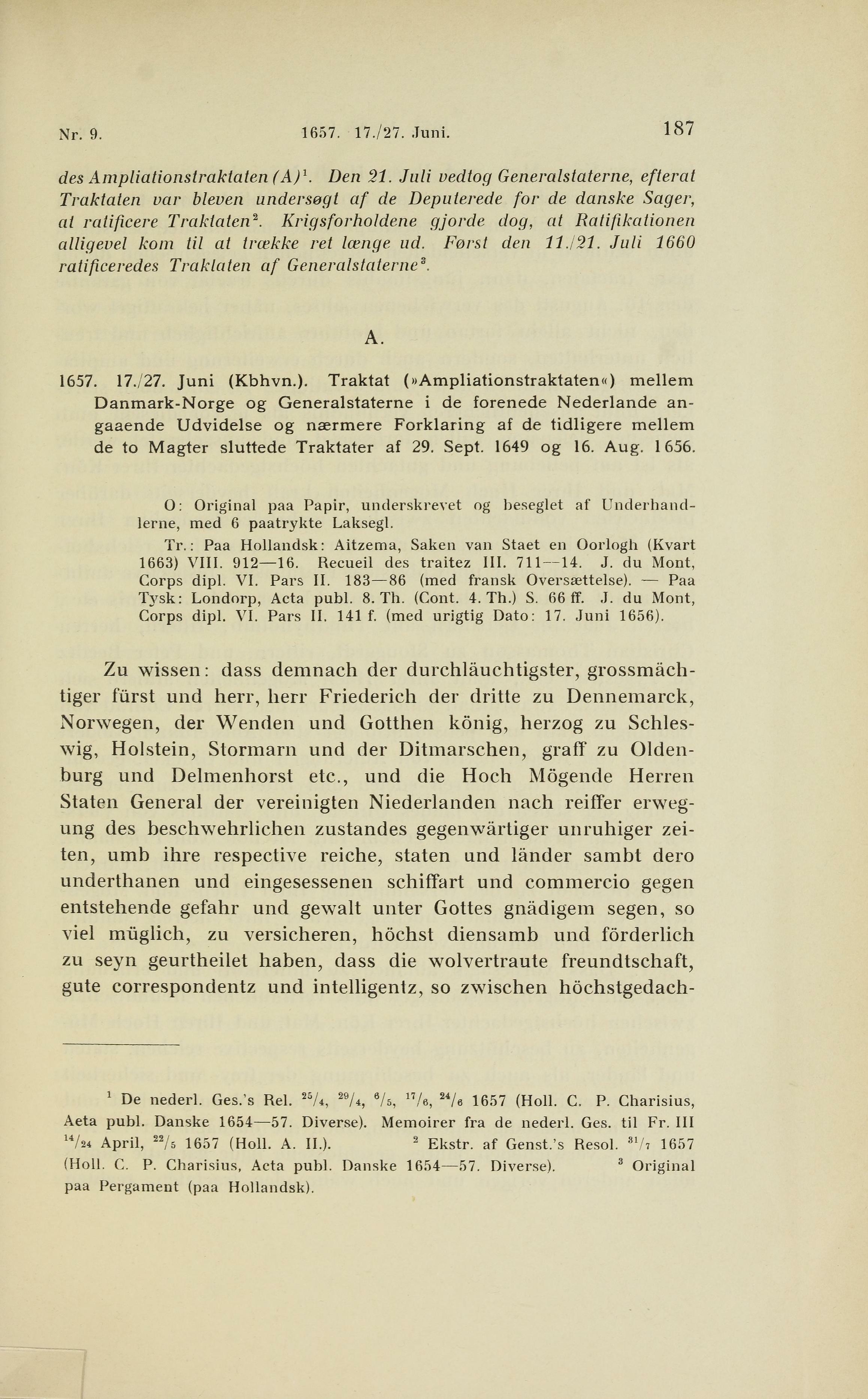 1657. 17./27. Juni (Kbhvn.). Traktat («Ampliationstraktaten») mellem