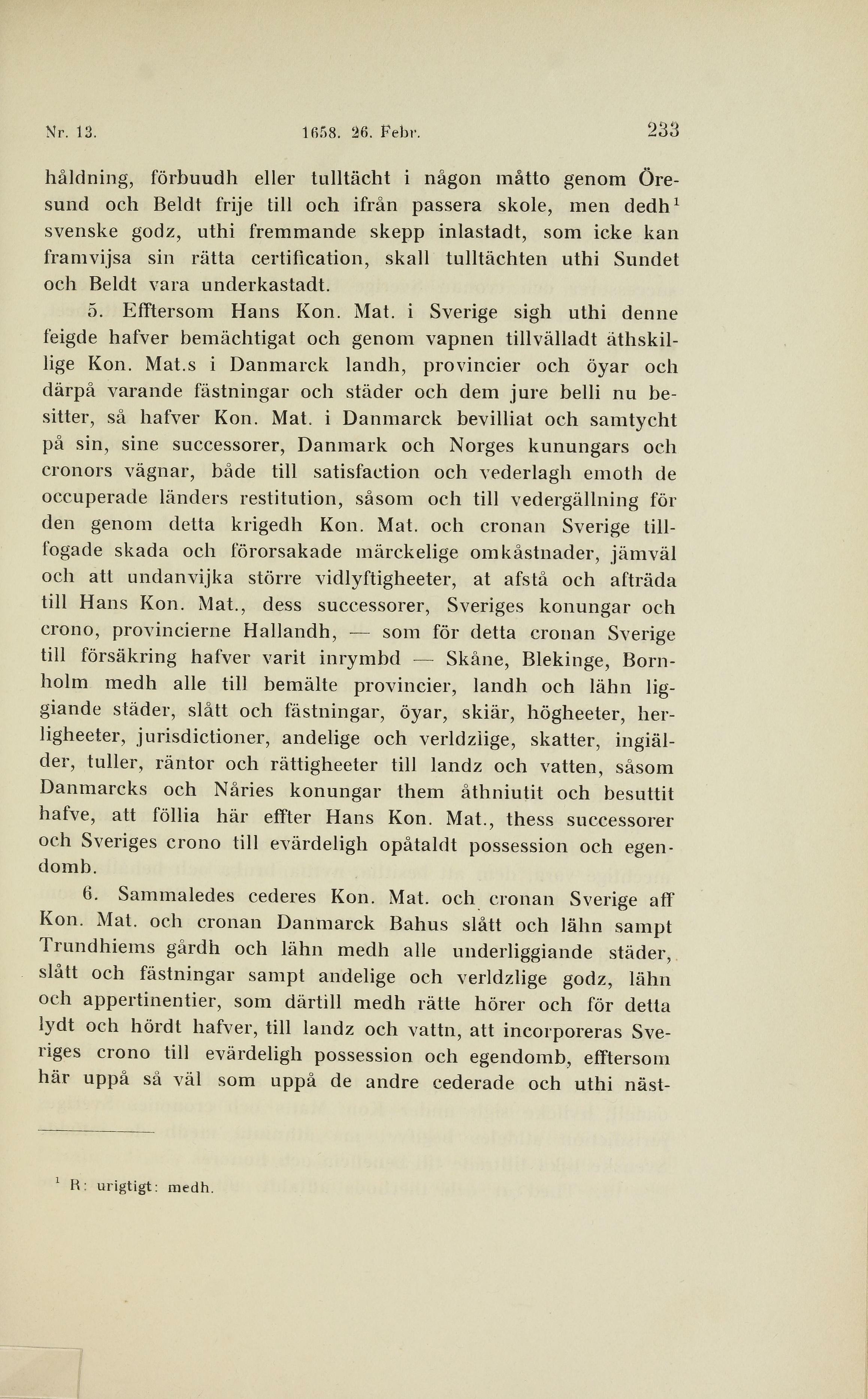 den genom detta krigedh Kon. Mat. och cronan Sverige till