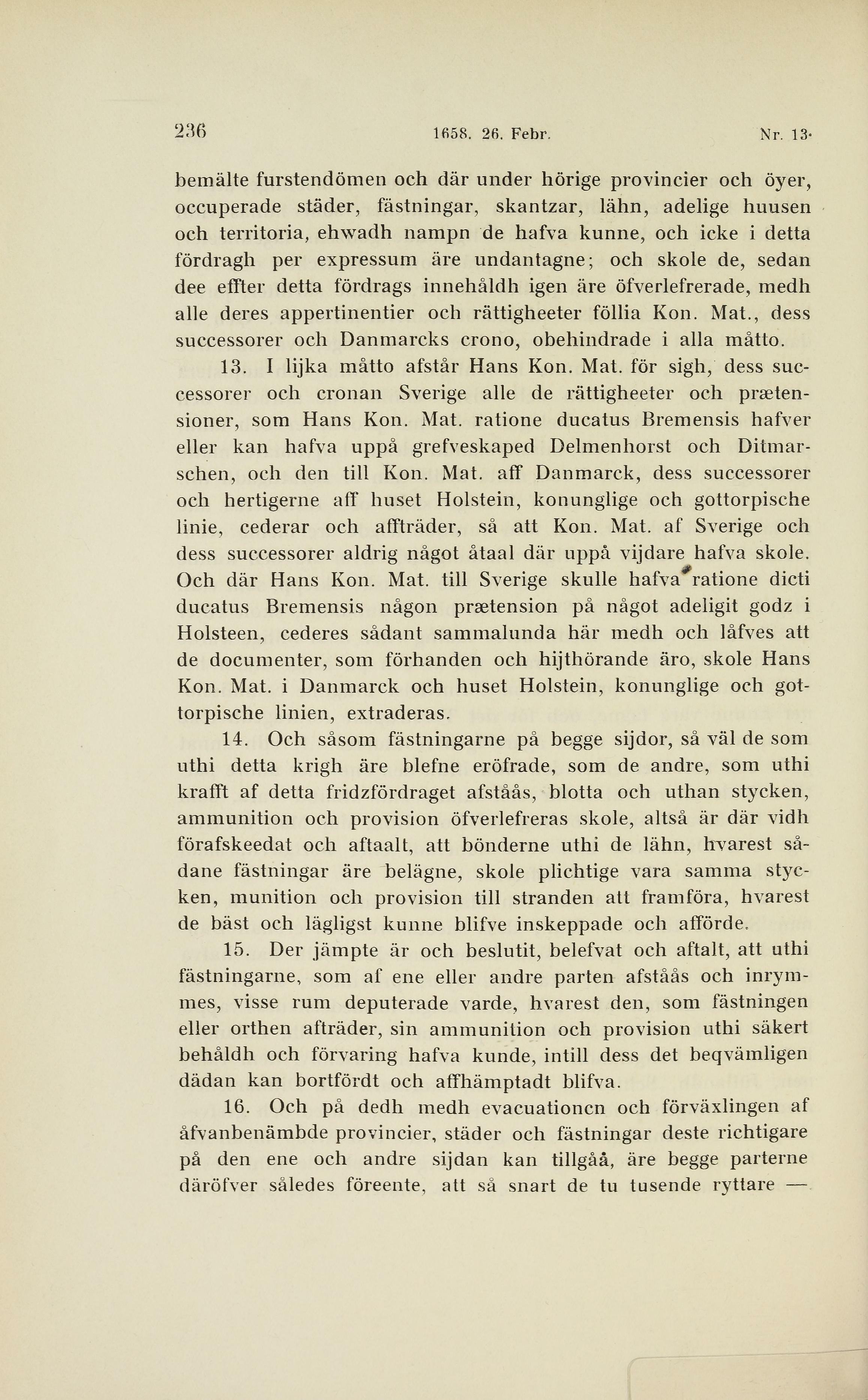 13. I lijka måtto afstår Hans Kon. Mat. for sigh, dess suc