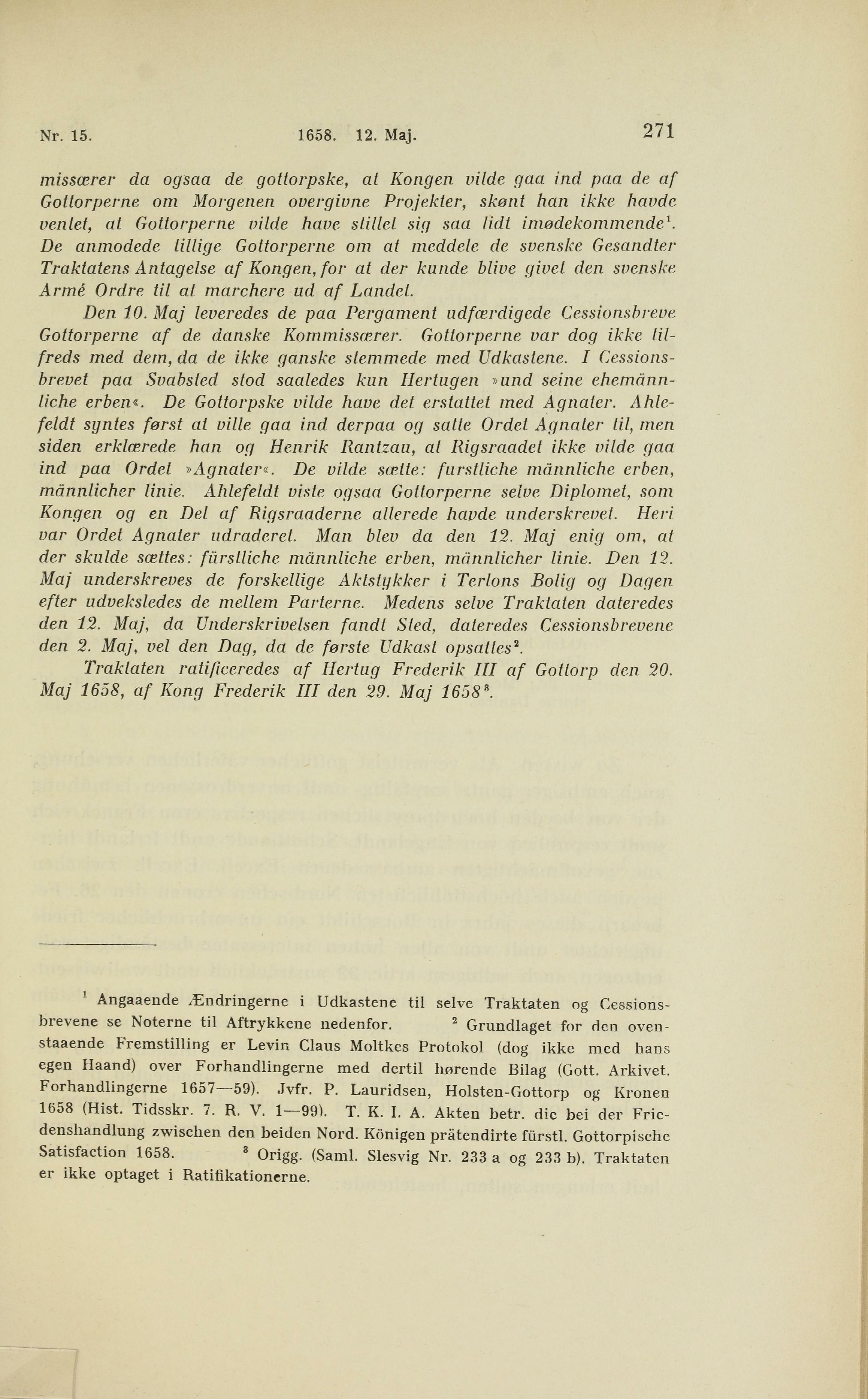 Forhandlingerne 1657 59). Jvfr. P. Lauridsen, Holsten-Gottorp og Kronen