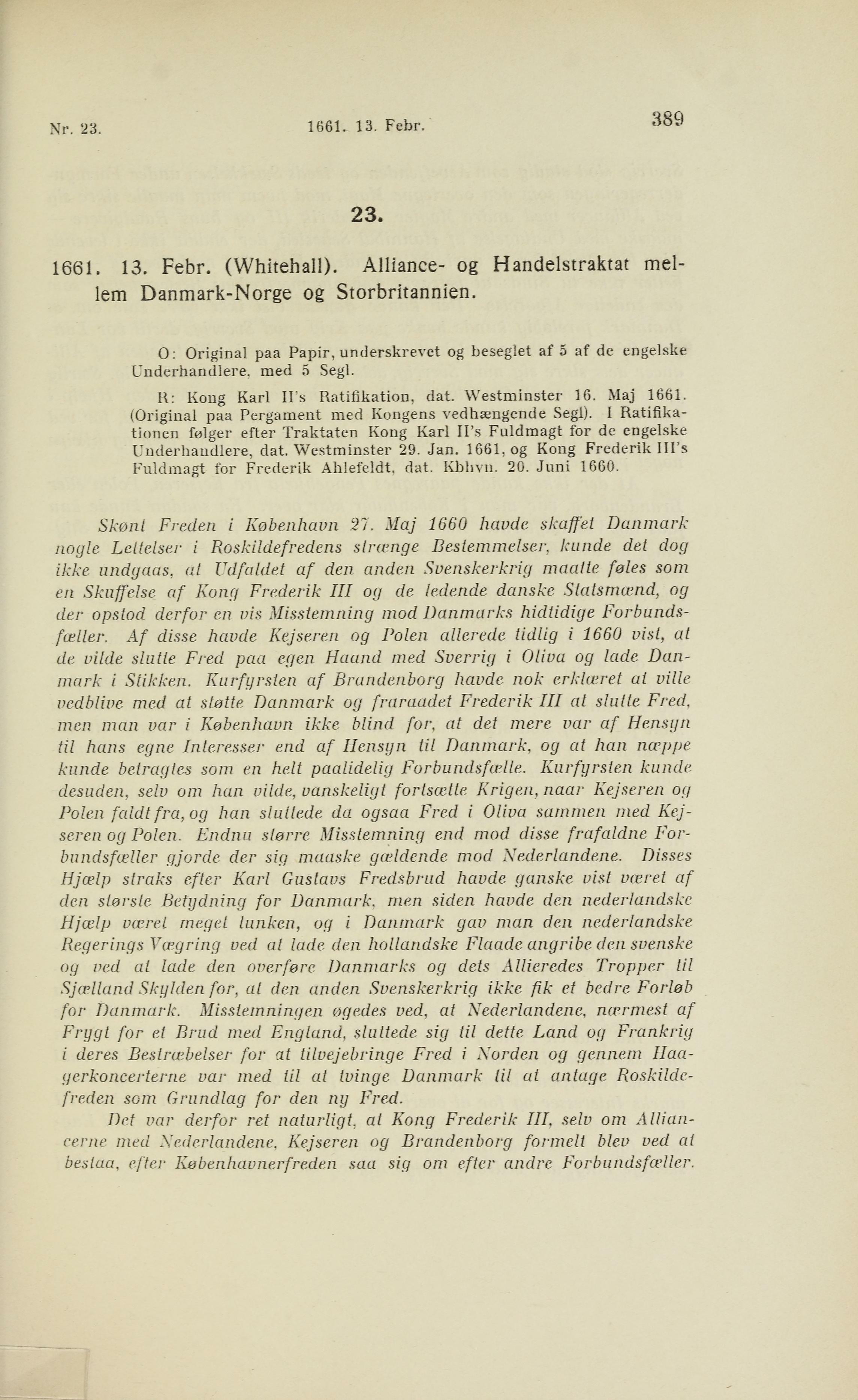 1661. 13. Febr. (Whitehall). Alliance- og Handelstraktat mel